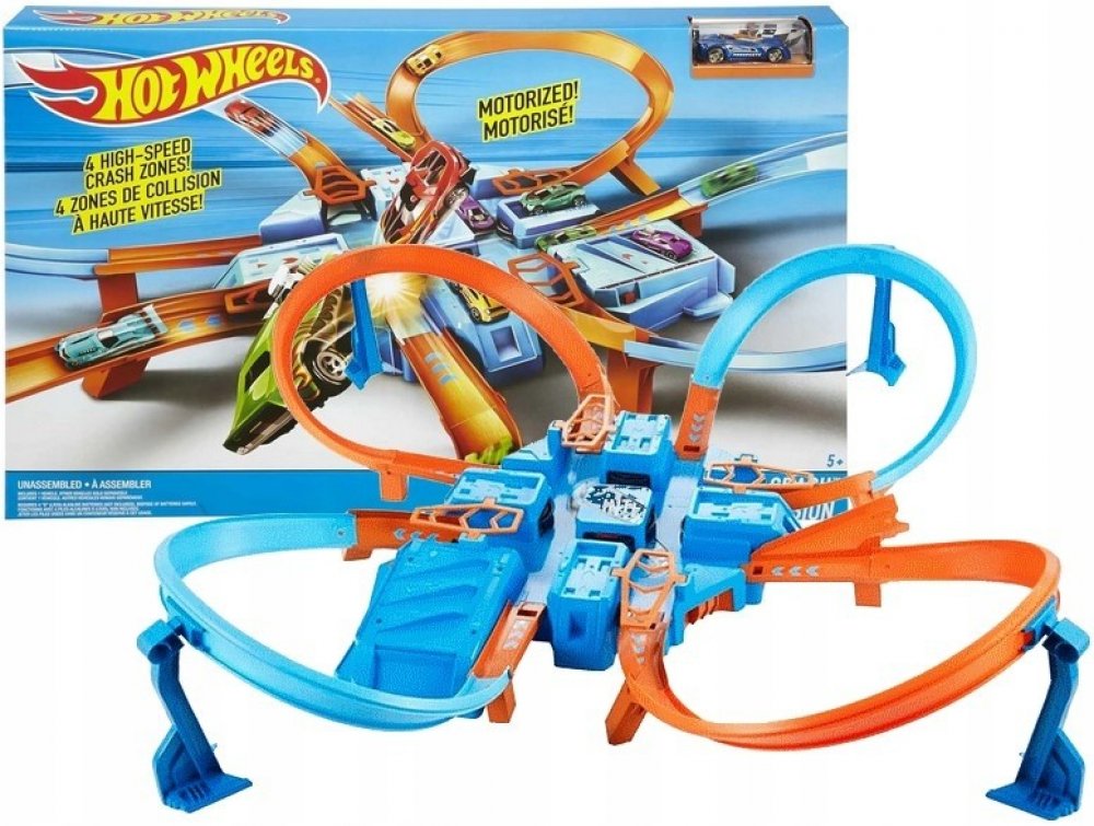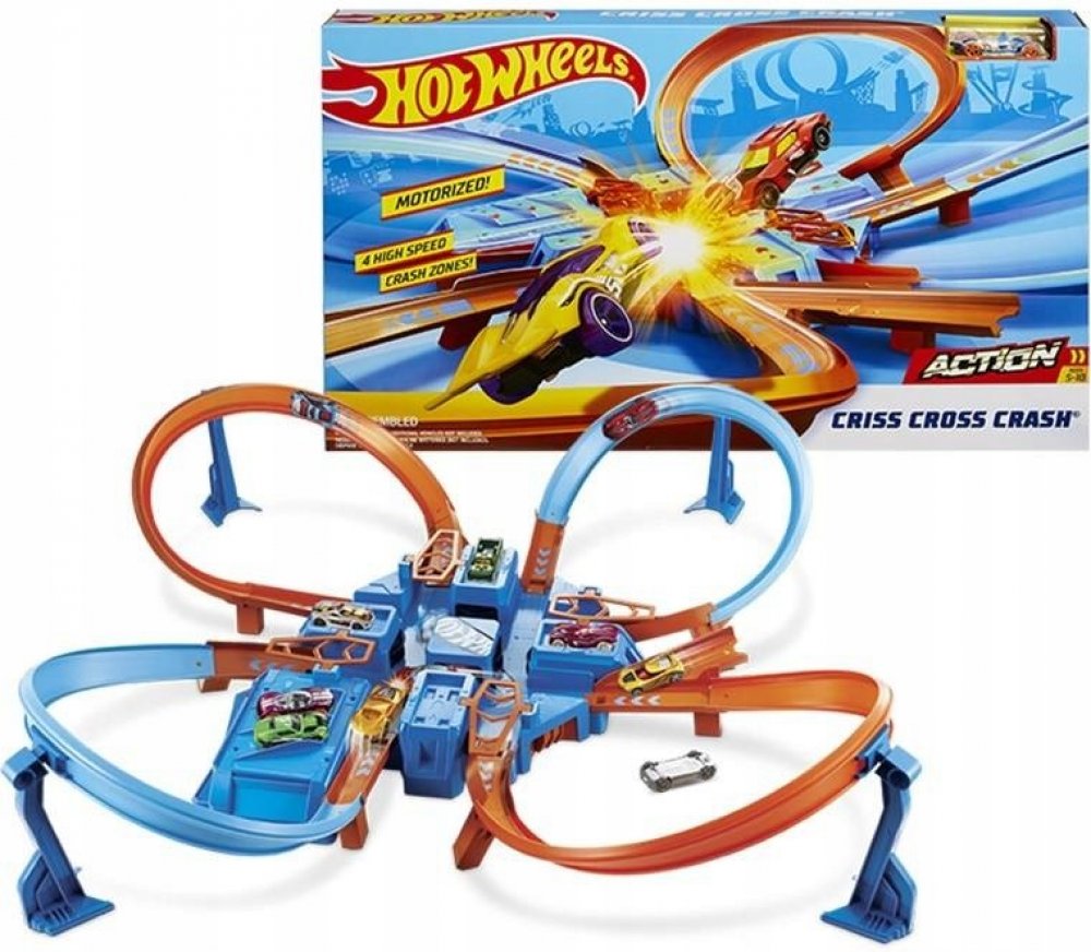 Zakroucená dráha Crash Track přináší velké vzrušení - je čas na zakroucenou a vzrušující akci s autíčky Hot Wheels®! Zábava může začít! Vypusť své vozidlo po dráze tak, že ho postavíš na oranžové startovací místo, a uvidíš, jak závratnou rychlostí obkrouží všechny smyčky. Buď opatrný, ať nespadneš z dráhy! Aby byla zábava ještě napínavější, projeď po dráze dalšími auty a sleduj velkolepé bouračky ...