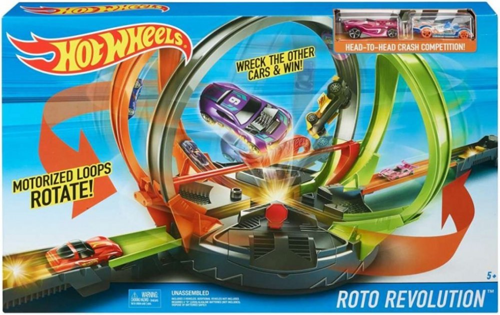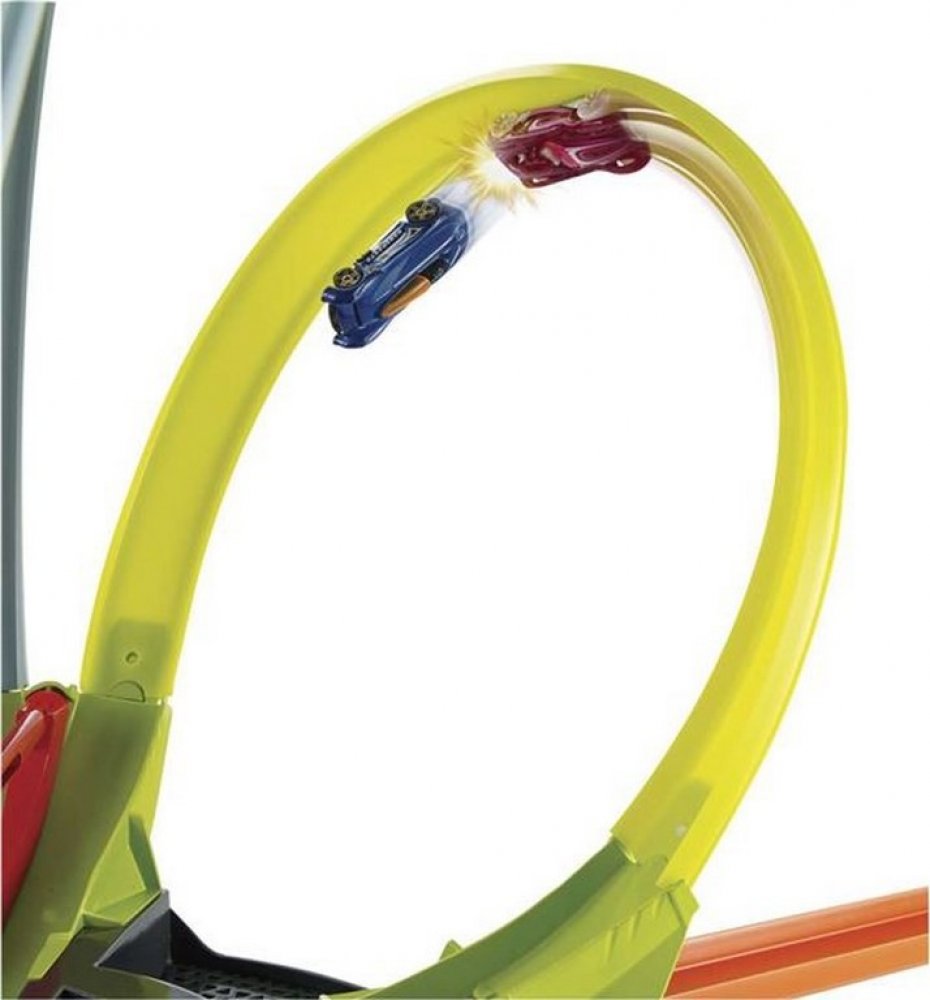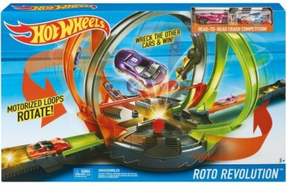 Zboží je kompletní, pouze má mírně poškozený obal. Dráha roto revoluce od Hot Wheels doopravdu otestuje tvé schopnosti v přímém souboji proti tvým přátelům. Máš rád výzvy? Vyčkej na správný okamžik a vypusť své Hot Wheels autíčko do tohoto rotujícího herního setu. Pokud bude tvé načasování správné, prosviští tvé aut závodními smyčkami a zlikviduje tvé protivníky jednoho po druhém během nekolika vteřin. Poslední auto na dráze vyhrává. Vyraz do akce s tímto interaktivním, strategickým herním setem, který otestuje tvé dovednosti a užij si tolik očekávanou Hot Wheels akci. Součástí balení jsou dvě odpalovací zařízení a dvě Hot Wheels autíčka.