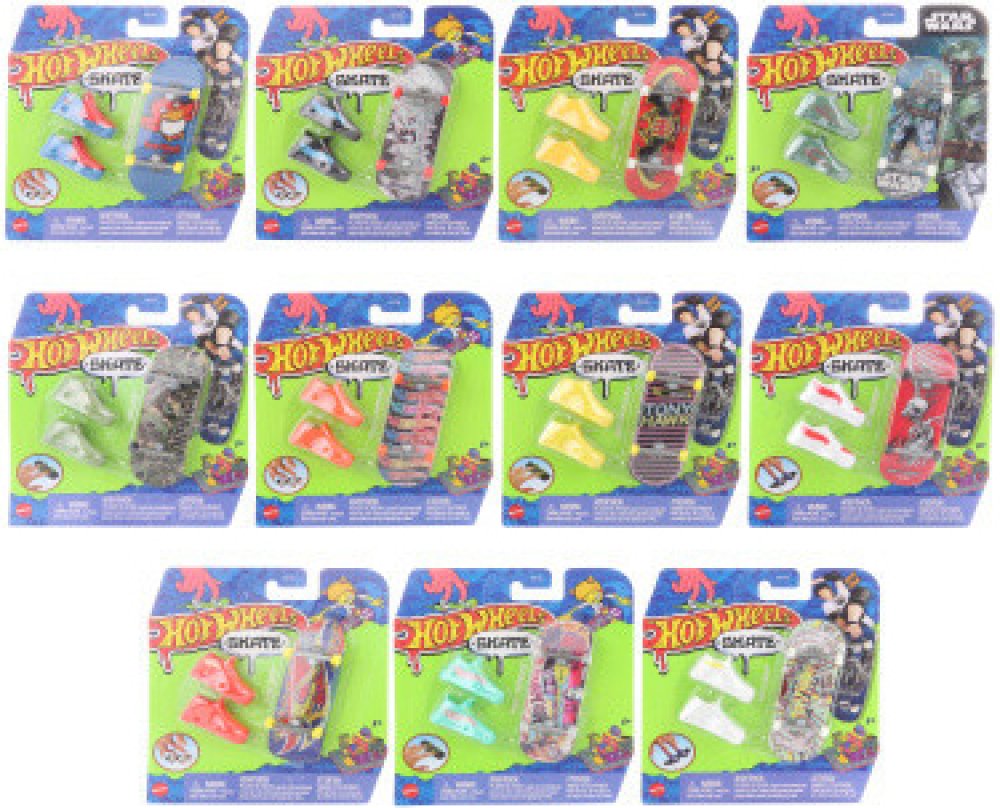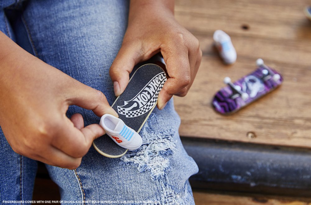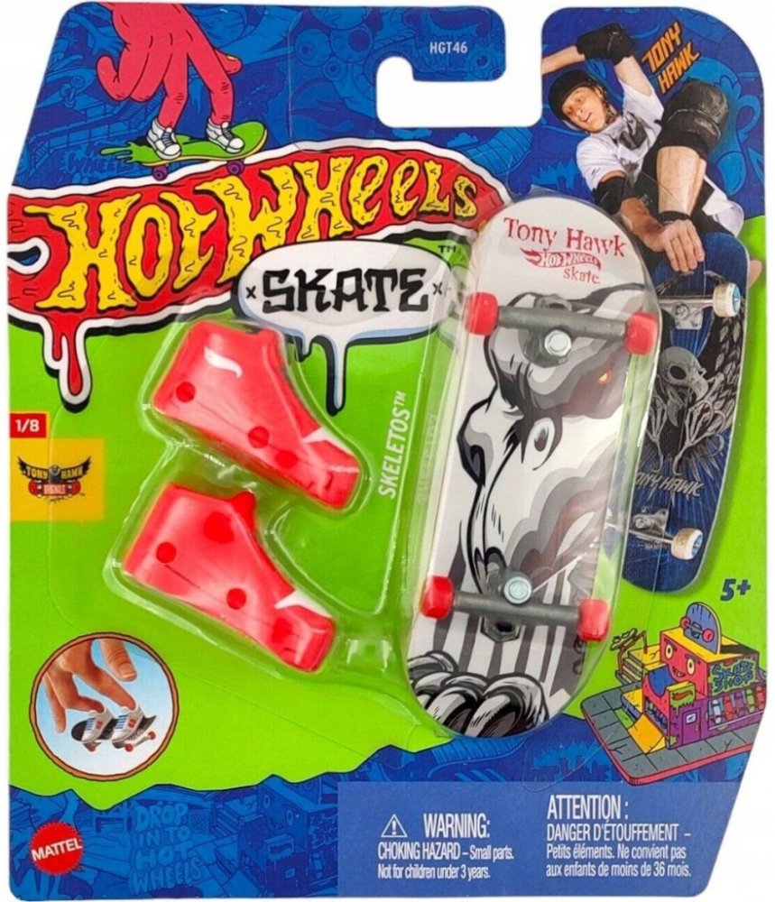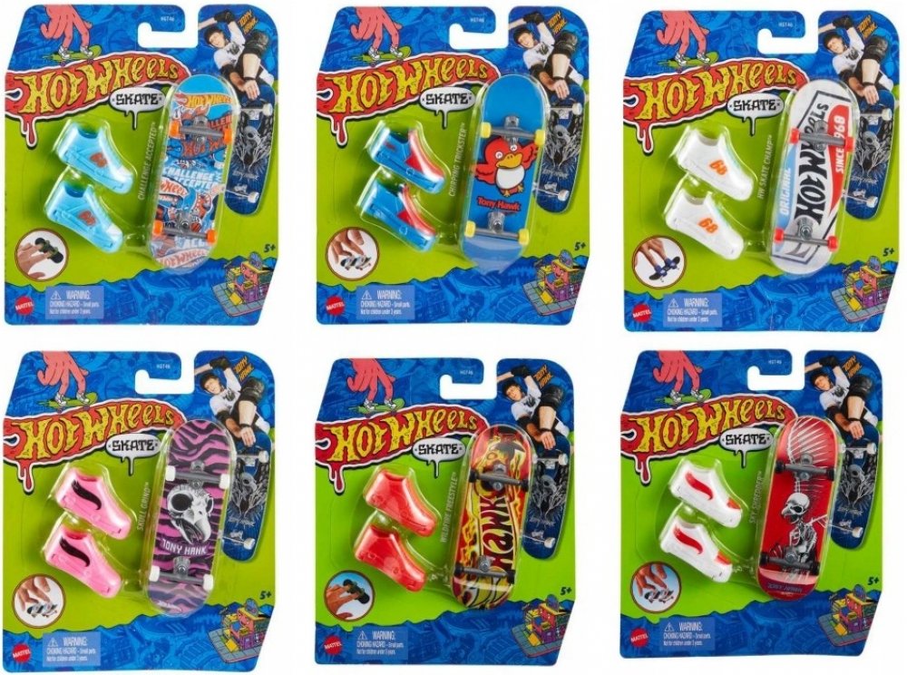 Vychutnejte si kompletní zážitek s tímto skvělým setem Hot Wheels® Sběratelská kolekce Fingerboard a boty, který obsahuje fingerboard, skate boty a jeden angličák Hot Wheels®. Kolekce byla navržena ve spolupráci s legendou skateboardingu Tony Hawkem a pyšní se prvotřídními detaily s metalickou grafikou fingerboardu a exkluzivním angličákem Hot Wheels®. Odnímatelné skate boty jsou navrženy tak, aby udržely konečky prstů na místě, když experiementujete s ollies nebo se skoky a obraty o 360° na angličáku Hot Wheels®. Děti budou během chvilky jezdít jako profíci, když zvládnou stylové kousky stejně jako Tony Hawk! Děti i sběratelé budou chtít sesbírat všechny sety fingerboardů s jejich prvotřídním designovým provedením. Obsahuje 1 fingerboard, 1 pár skate bot a 1 angličák Hot Wheels®. Každý set se prodává samostatně v závislosti na dostupnosti. Barvy a vzhled výrobku se mohou lišit.
