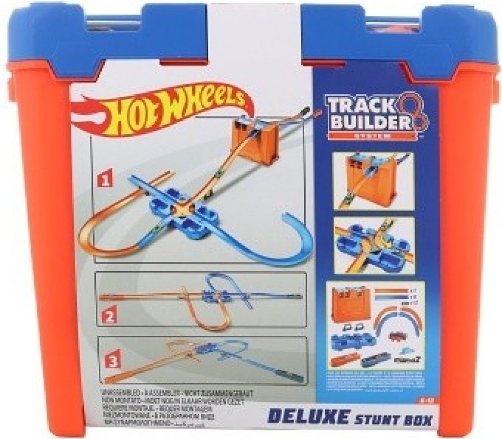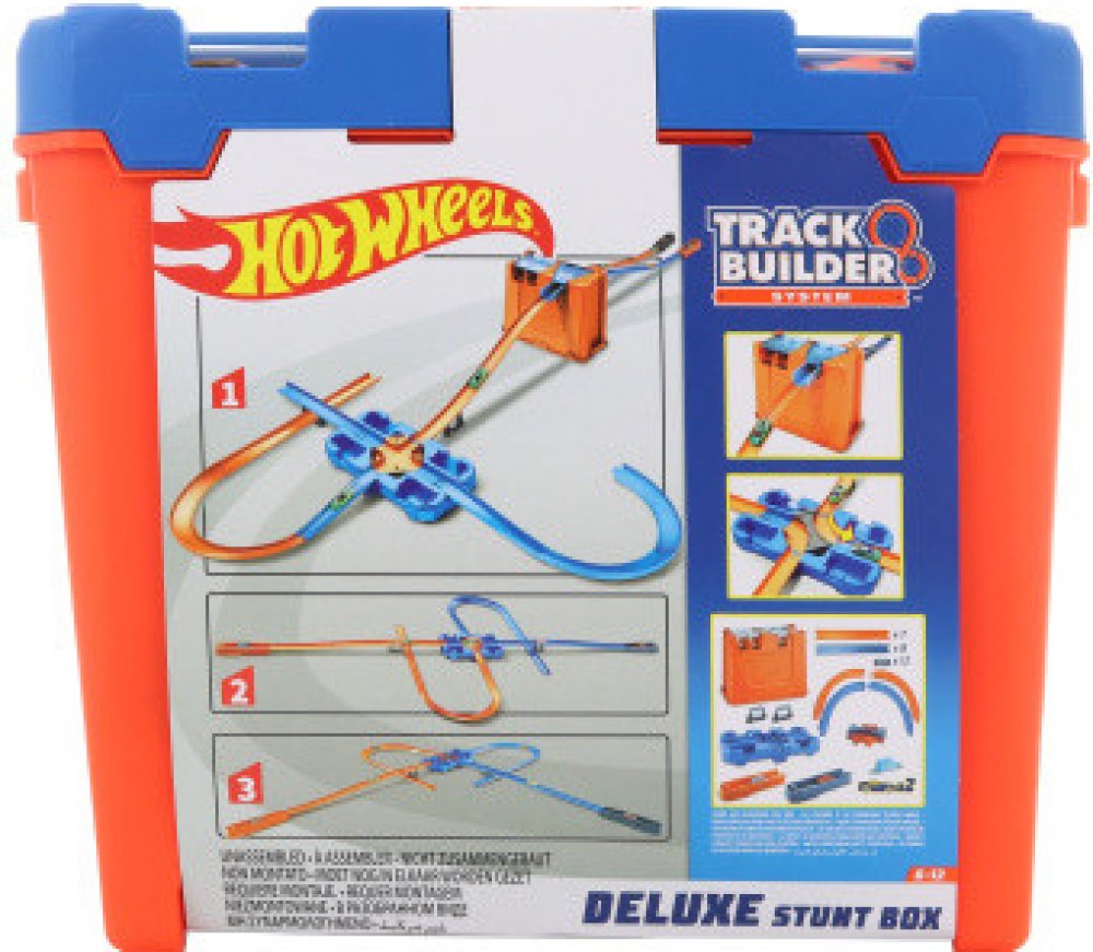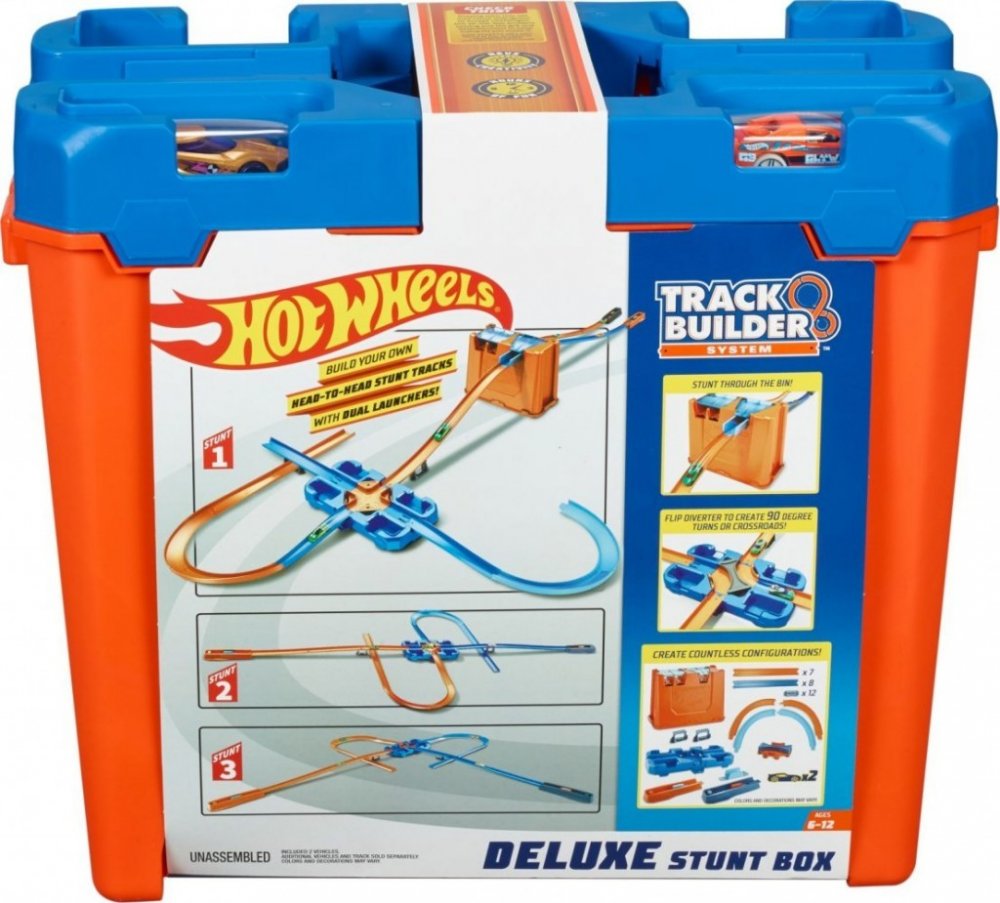 Nezapomeň při svých kaskadérských kouscích využít i box. Otestuj závodní dráhu na dně boxu a pokus se projet zónu nehod na víku aniž bys naboural! Jakmile je čas se se závoděním na chvíli rozloučit, všechny díly můžeš jednoduše složit zpět do boxu. Připrav pro svá vozidla parádní výzvu a zjisti, které z nich je nejrychlejší, nebo vyzvi své kamarády a závoďte společně. Připoj tento set k dalším herním setům z kolekce Track Builder od Hot Wheels a vytvoř ještě větší dráhy a kaskadérské kousky!