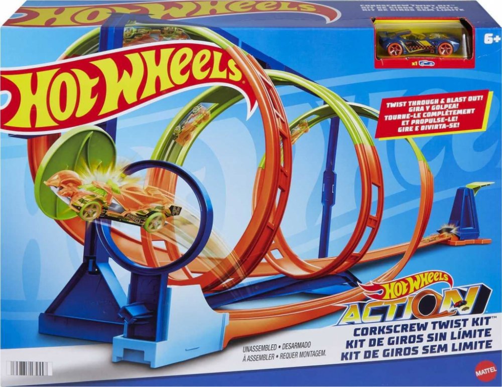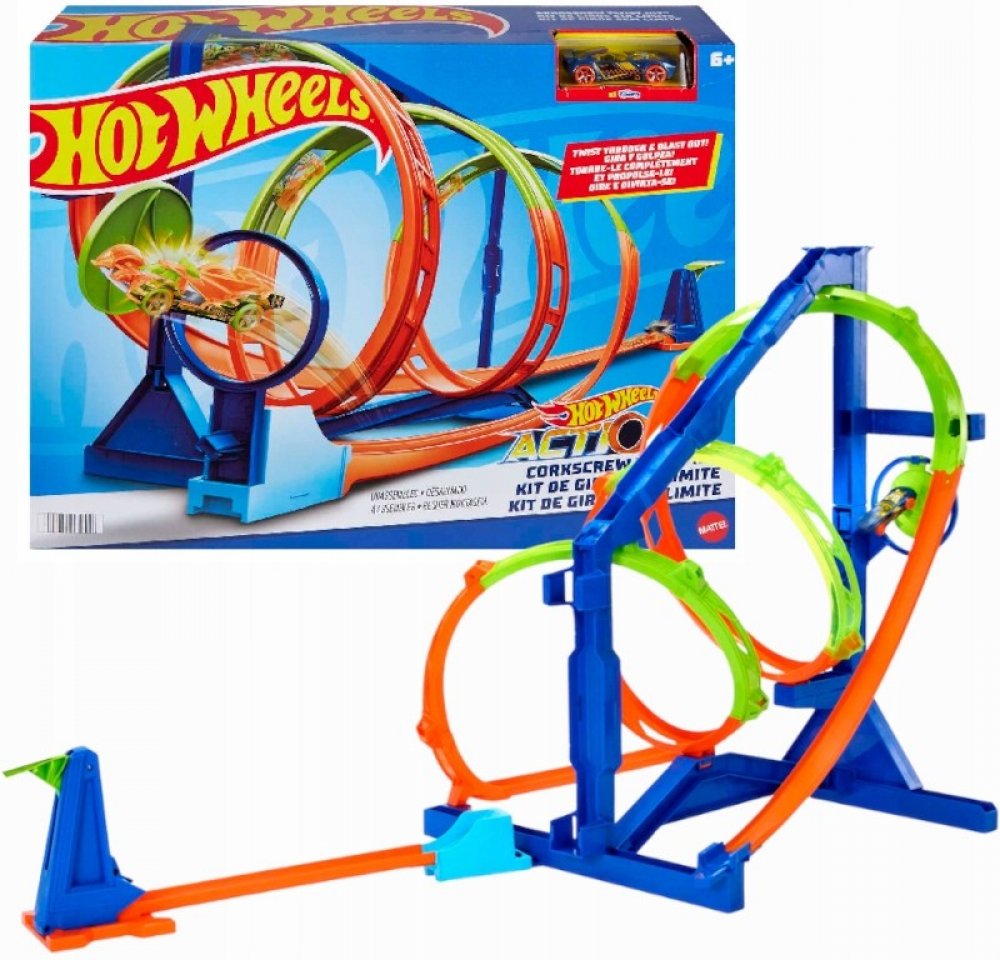 Zabavte děti Hot Wheels® Vývrtkovou dráhou. Po sestavení nebudete o dětech vědět dlouhé hodiny. Se svými autíčky budou pořádat závody. Kdo nejlépe a nejrychleji zdolá náročnou trať. Vystřelit mohou angličáky přes trojitou spirálu, nebo jet přímo na cíl středem vývrtky. Vystřelovací zařízení, cíl a obvodové díly dráhy mají na základně vyhrazená místa pro snadné uložení. K dráze je dodán jeden angli...