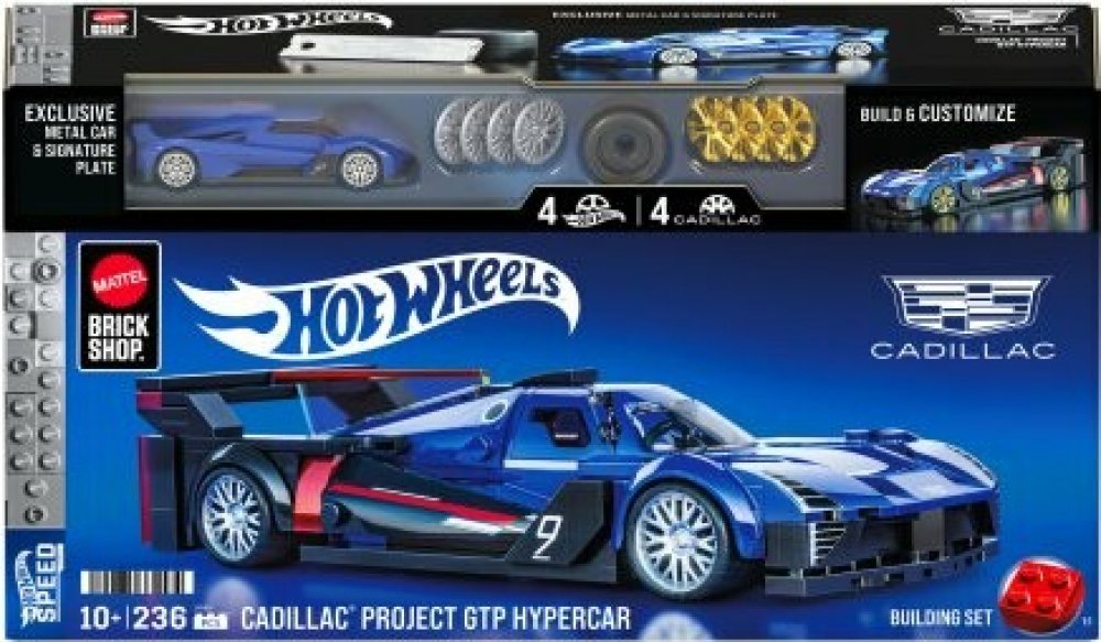 MATTEL Mega Hot Wheels auto Cadillac Project GTP Hypercar 1:32. Detailní prémiová stavebnice z kovu a plastu, součástí angličák a samolepky, 236 dílků. Velikost modelu 17cm.