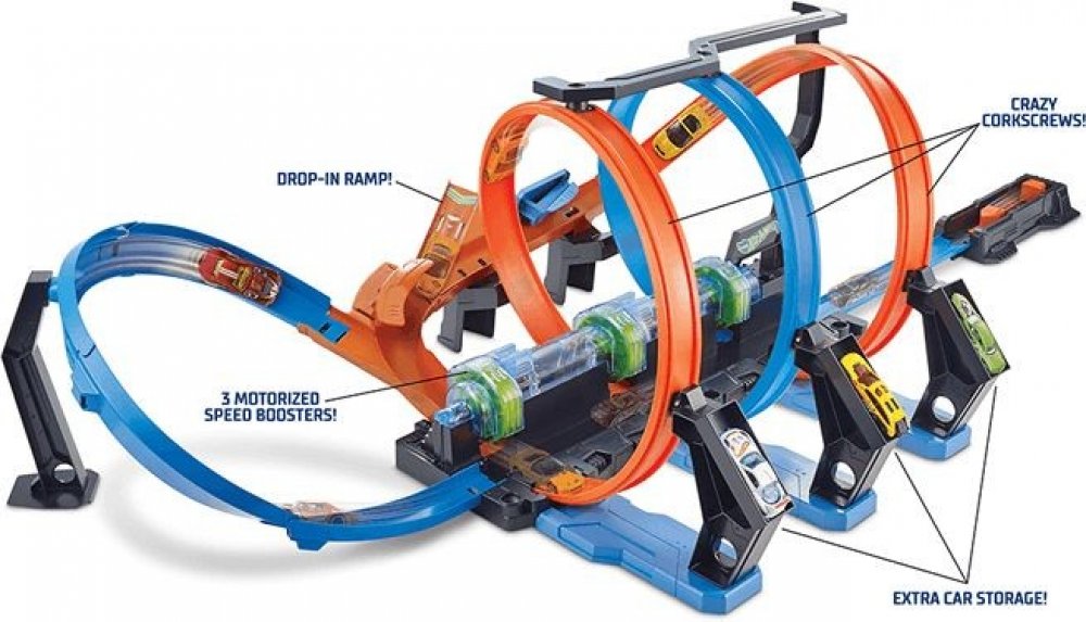 Hot Wheels, to jsou ikonické oranžové závodní dráhy, autíčka a garáže. Na těchto drahách se mohou autíčka prohánět neuvěřitelnou rychlostí a dělat skvělé kaskadérské kousky. Závodní dráhy a herní sety jsou propojitelné a nabízejí zcela unikátní systém hraní.