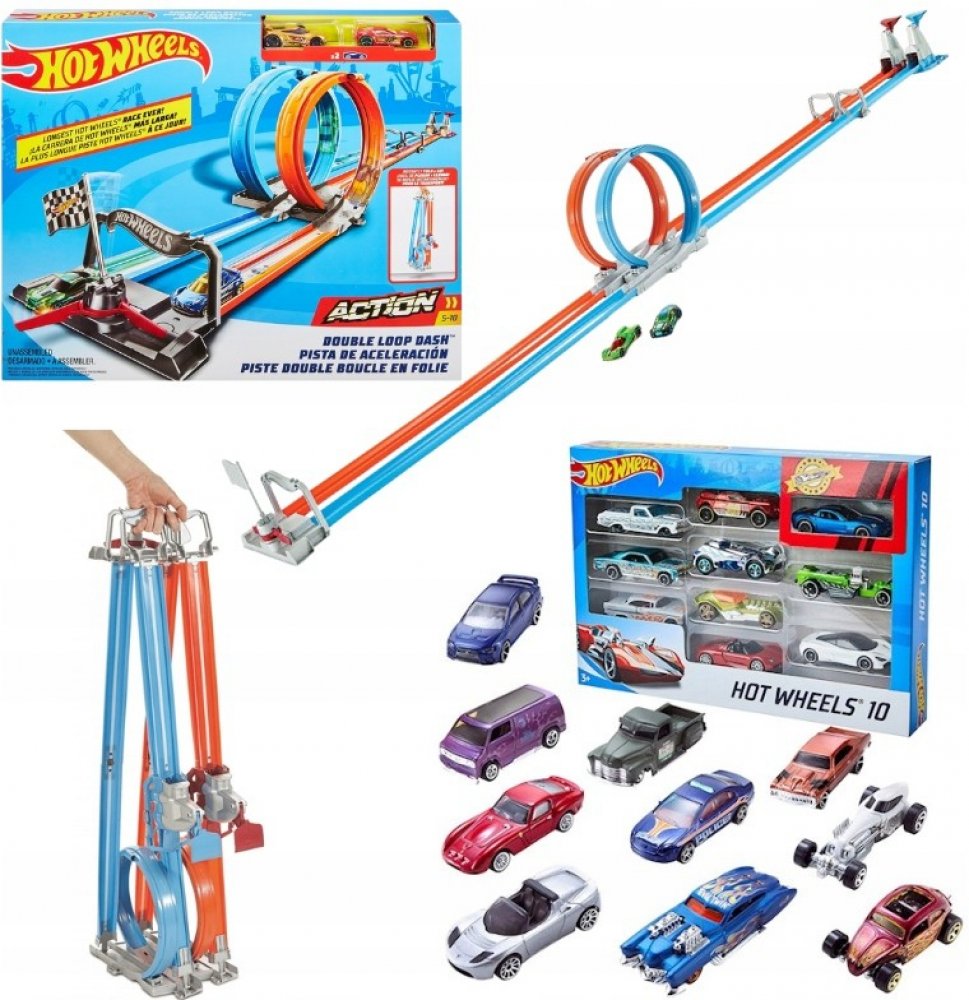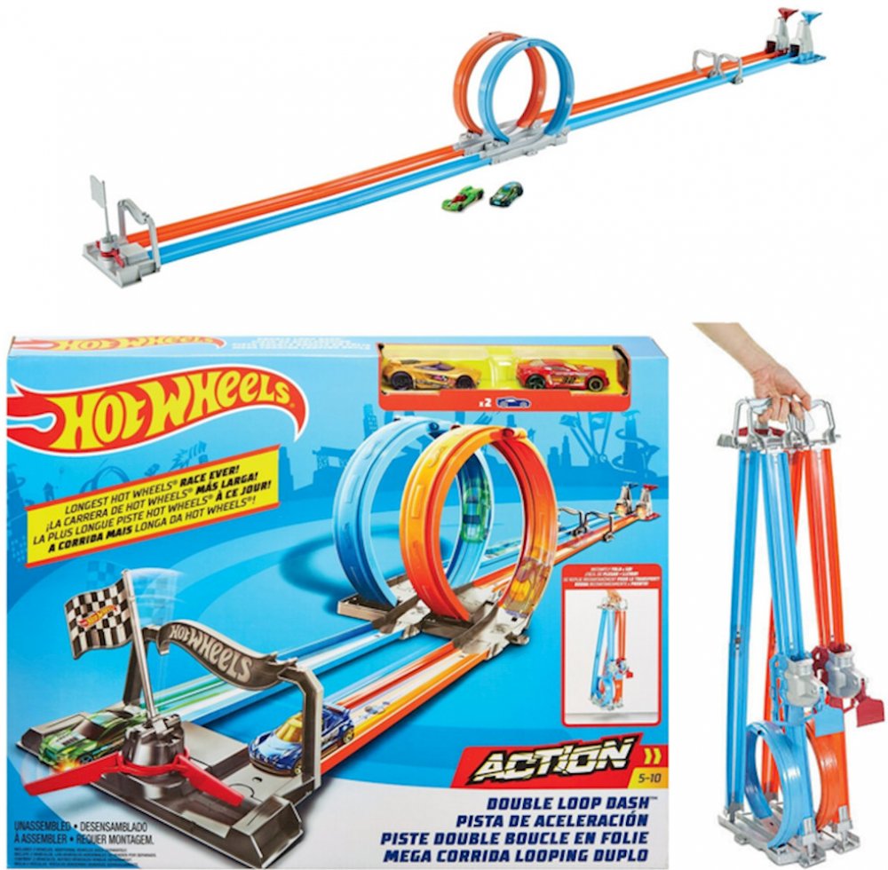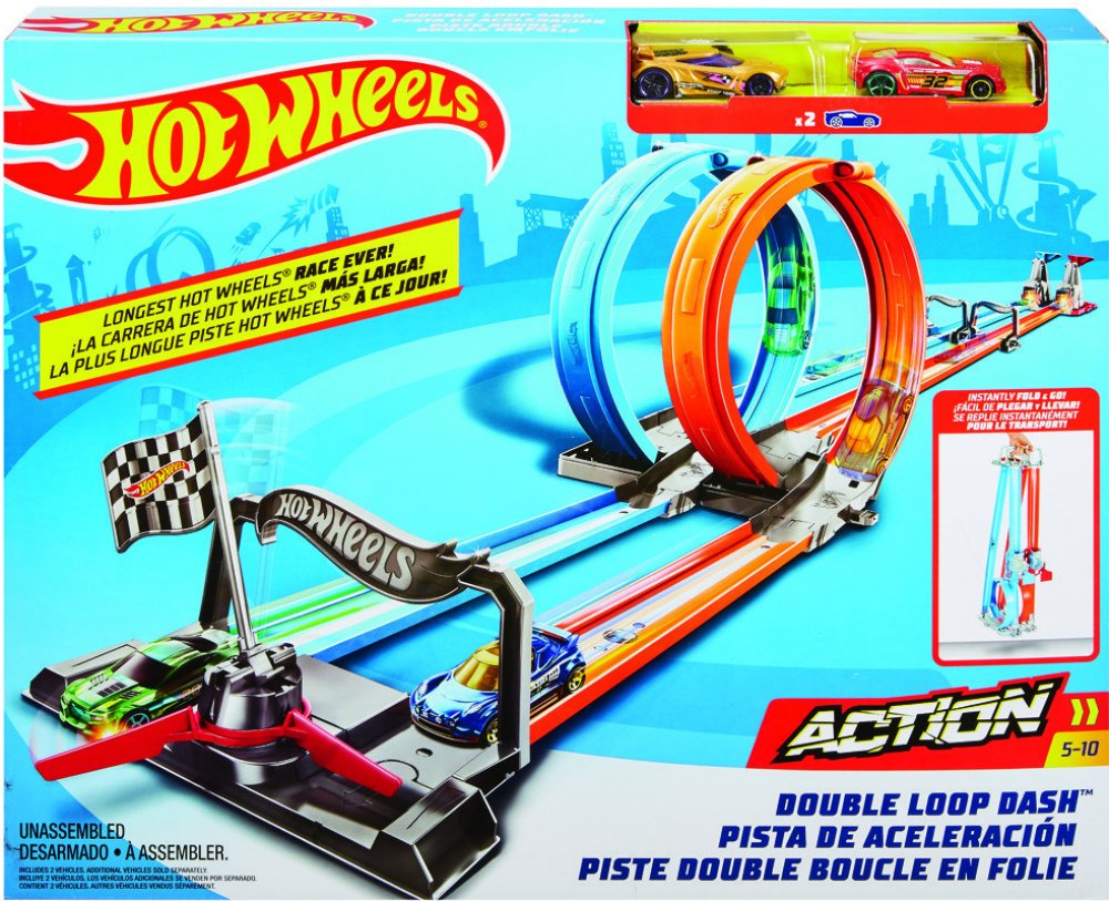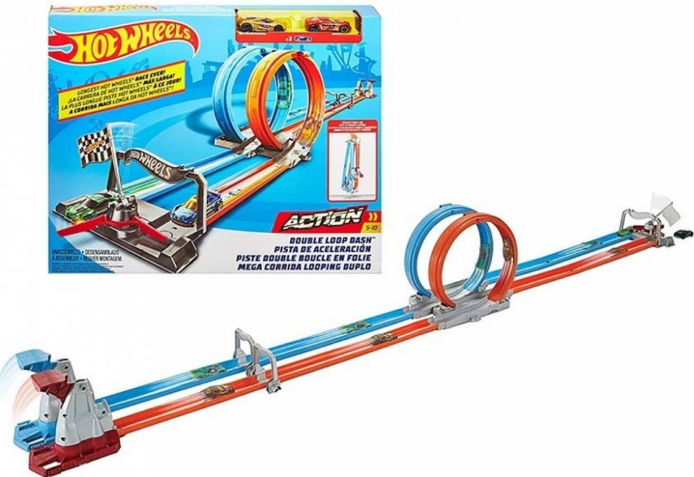 Odstartuj únikový závod na dvojité dráze Hot Wheels! Dokončete epickou smyčku, abyste co nejrychleji dorazili do cíle a aktivovali vlajku. Dráha je dlouhá 2 metry a skládá se v několika jednoduchých krocích pro snadné přenášení. Sadu lze sestavit i v režimu pro jednoho hráče s opravdu dlouhou rovinkou - až 4 metry trati. Skvělý dárek pro děti od 5 do 10 let.