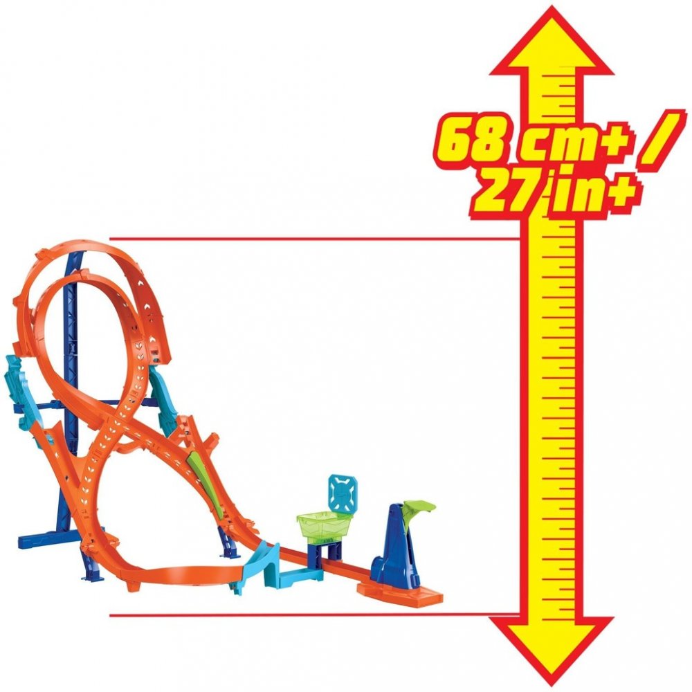 Vertikální osmičková dráha Hot Wheels měří více než 60cm a nabízí dvě různé dráhy pro kaskadérské kousky a závody. Otočením ručního přepínače si děti vyberou mezi vertikální zatáčkou a dráhou osmičky! Obsahuje jeden angličák Hot Wheels. Dráhu lze připojit k dalším setům (prodávají se samostatně).