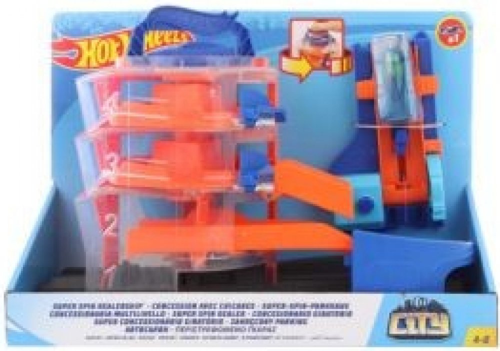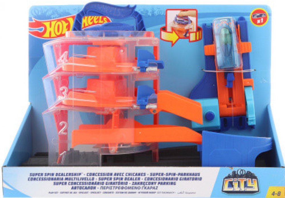 Vydej se do města Hot Wheels® a užij si spoustu zábavy a dobrodružství s těmito luxusními městskými tematickými sety! V těchto fantastických setech najdeš parádní vychytávky ve stylu Hot Wheels®. Jakmile si užiješ dobrodružství, které nabízí město Hot Wheels®, zajeď do našeho parádního rotujícího pneushopu a nech si „poladit“ své auto. Projeď se po spirálové rampě a vyber si nové pneumatiky a disky. Po bleskurychlé výměně zajeď do obrovského kola a roztoč to! Projeď smyčkou uvnitř velké pneumatiky, vyleť ven druhou stranou a uháněj vstříc novým dobrodružstvím do města Hot Wheels®!
