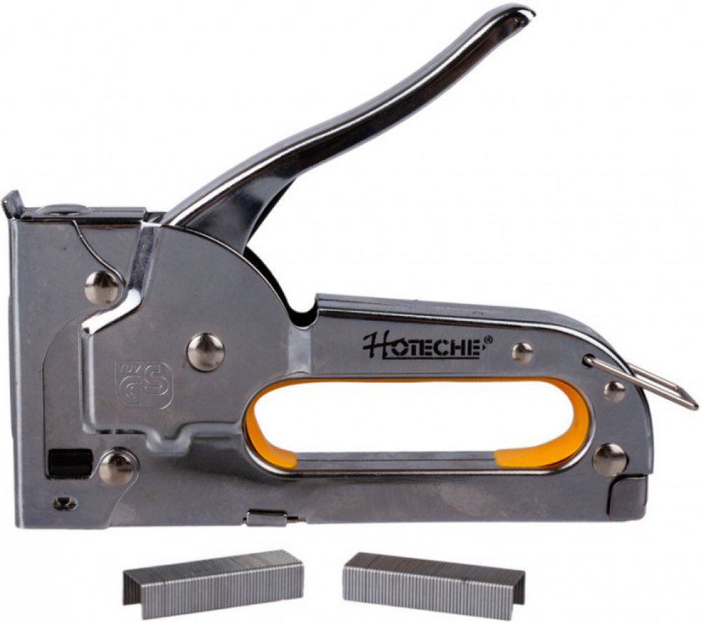 Kvalitní sponkovačka značky Hoteche je vyrobená z chrom vanadiové oceli. Pevná a bytelná konstrukce sponkovačky zajišťuje její dlouhou životnost a odolnost při každodenním používání. Vnitřní úchop je osazený gumovou vložkou, která je protiskluzová, pro pohodlnější uchopení. Sponkovačka je také vybavena dorazem proti úplnému stlačení.