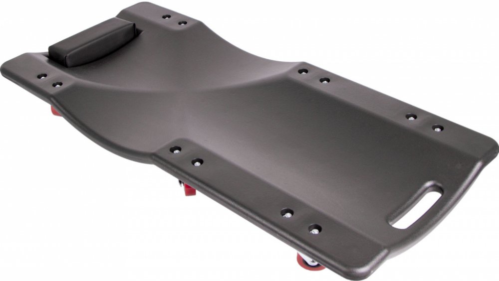 Pohodlí zajišťuje ergonomický tvar lehátka a měkký polštářek pod hlavu. Bezproblémový pohyb pod vozidlem díky šesti otočným kolečkům.