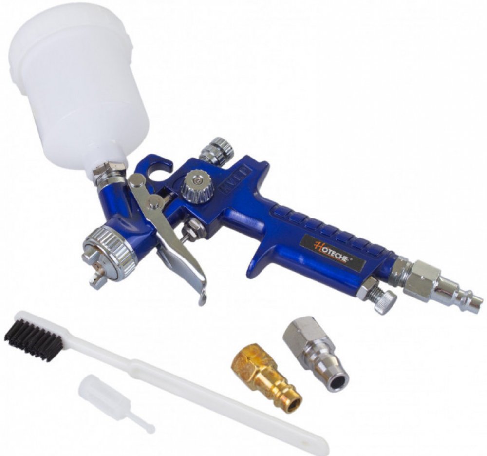 Jedná se o vzduchovou lakovací pistoli značky Hoteche, někdy také nazýváno jako rozprašovací pistole pneumatická.Přívod vzduchu je 1/4" a tlak vzduchu 2 bary. Tryska o průměru 0.8 mm. Rukojeť dobře padne do ruky.Tato pneumatická stříkací pistole je vhodná pro domácnosti i dílny pro použití v exteriéru. Technické parametry:Tlak vzduchu:23 bar.Přívod vzduchu: 1/4".Velikost trysky: 0.8 mm.Kapacita šálku: 100 ml.Dodávka tekutiny: 90 - 110 ml / min.1 ks 1/4" zásuvka pro USA.1 ks 1/4" evropská zásuvka.1 ks 1/4" japonská zásuvka.