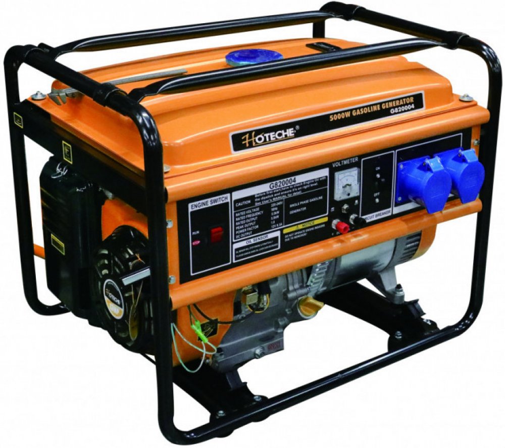 Benzínová elektrocentrála od značka Hoteche s výkonem 5000 W má jednofázový generátor elektrické energie, vzduchem chlazený,jednoválcový, 4-taktní motor, 1x výstup 12 V, 2x 230 V a voltmetr.