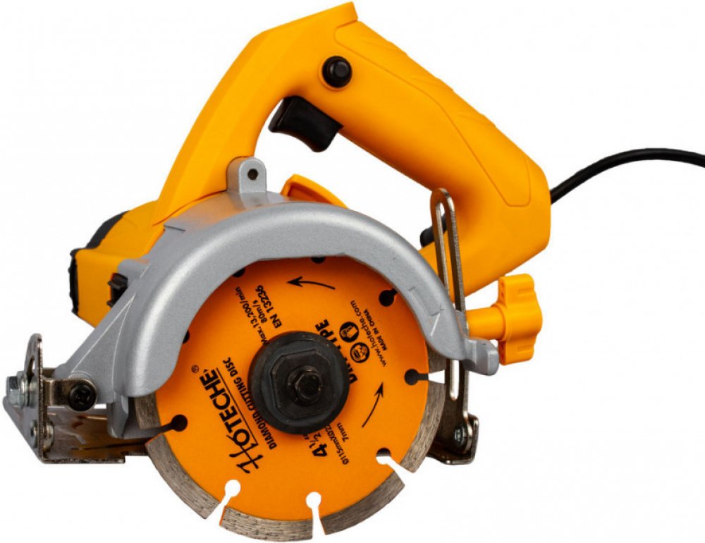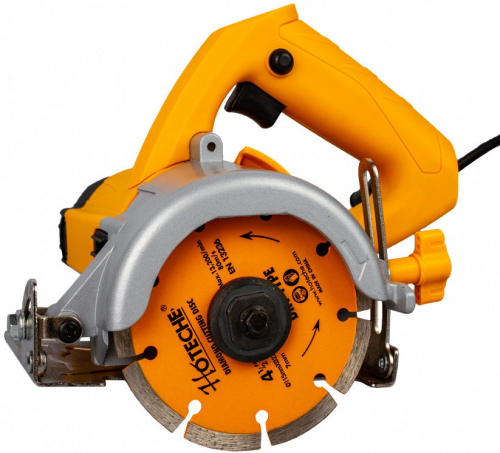 Řezačka dlaždic a obkladů značky Hoteche pro řezné kotouče s průměrem 110 mm je ideálním pomocníkem pro řezání mramoru, porcelánu, keramiky, břidlice a dalších materiálů.