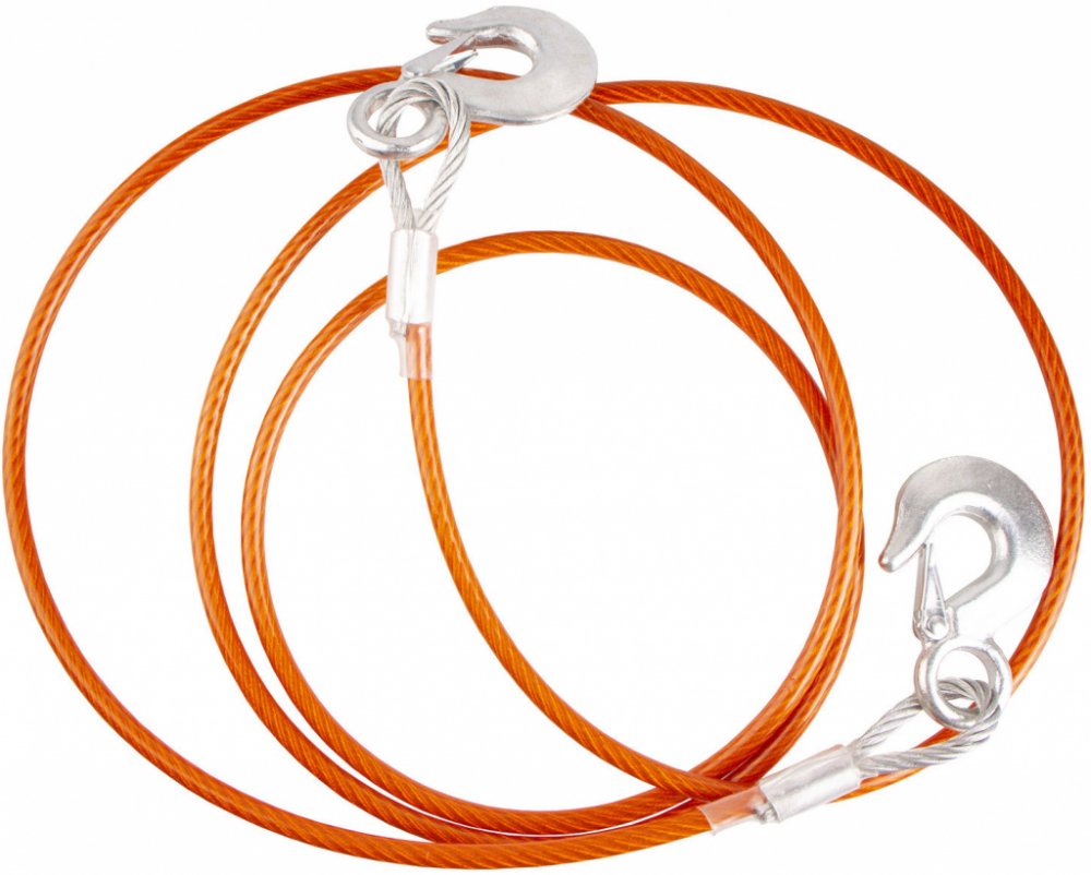 Autolano na vlečení a vyprošťování vozidel, tažná síla 2500 kg, délka 350 cm, oranžová barva – Hoteche HT670001 Ocelové tažné lano určené pro auta do hmotnosti 2,5 tuny (osobní, menší dodávky apod.). Snadno se upevňuje pomocí háků s bezpečnostními pojistkami, které zabraňují nechtěnému uvolnění. Vybaveno plastovým ochranným potahem v oranžové barvě, díky kterému je mezi auty dobře viditelné. Vhodné jako součást povinné výbavy. Upozornění: smí se používat pouze k vlečení vozidel, která nemají poškozené brzdy! Technické parametry: - tažná síla: 2,5 tuny - mez pevnosti: 5 tun - délka: 3,5 metru - zakončení: háky