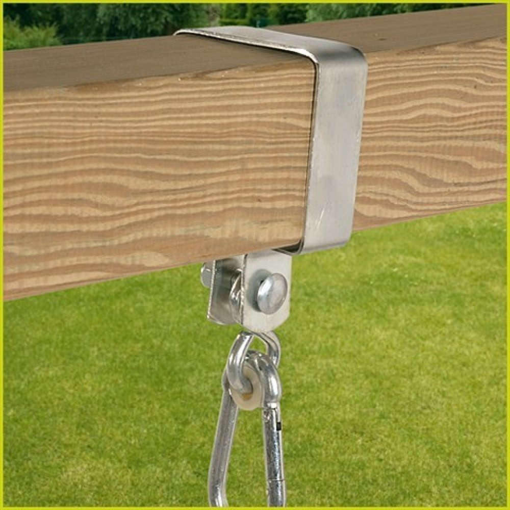 Pro zavěšení dětské houpačky k horní části konstrukce dětského hřiště. Tento držák je vhodný pro hranaté konstrukce. Tímto jednoduchým, však účinným mechanismem vytvoříte ze svého dětského hřiště bezpečné místo pro děti.