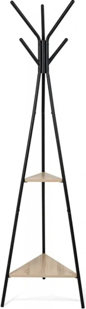 Černá konstrukce s dostatkem háčků pro pohodlné zavěšení oblečení či doplňků, ladí s překližkovou poličkou v přírodní barvě. Ideální do předsíně, kanceláře či šatny.