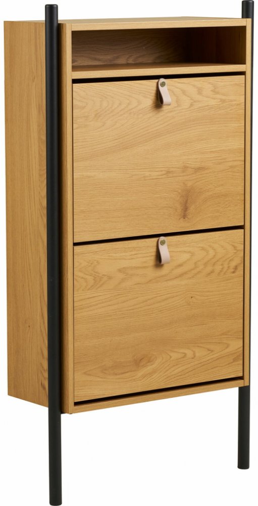 Stylový a praktický botník Barco v dekoru dub přináší kombinaci moderního designu a funkčnosti. Díky svému úzkému tvaru se snadno vejde i do menších předsíní, přičemž nabízí dostatek prostoru pro uložení obuvi.
