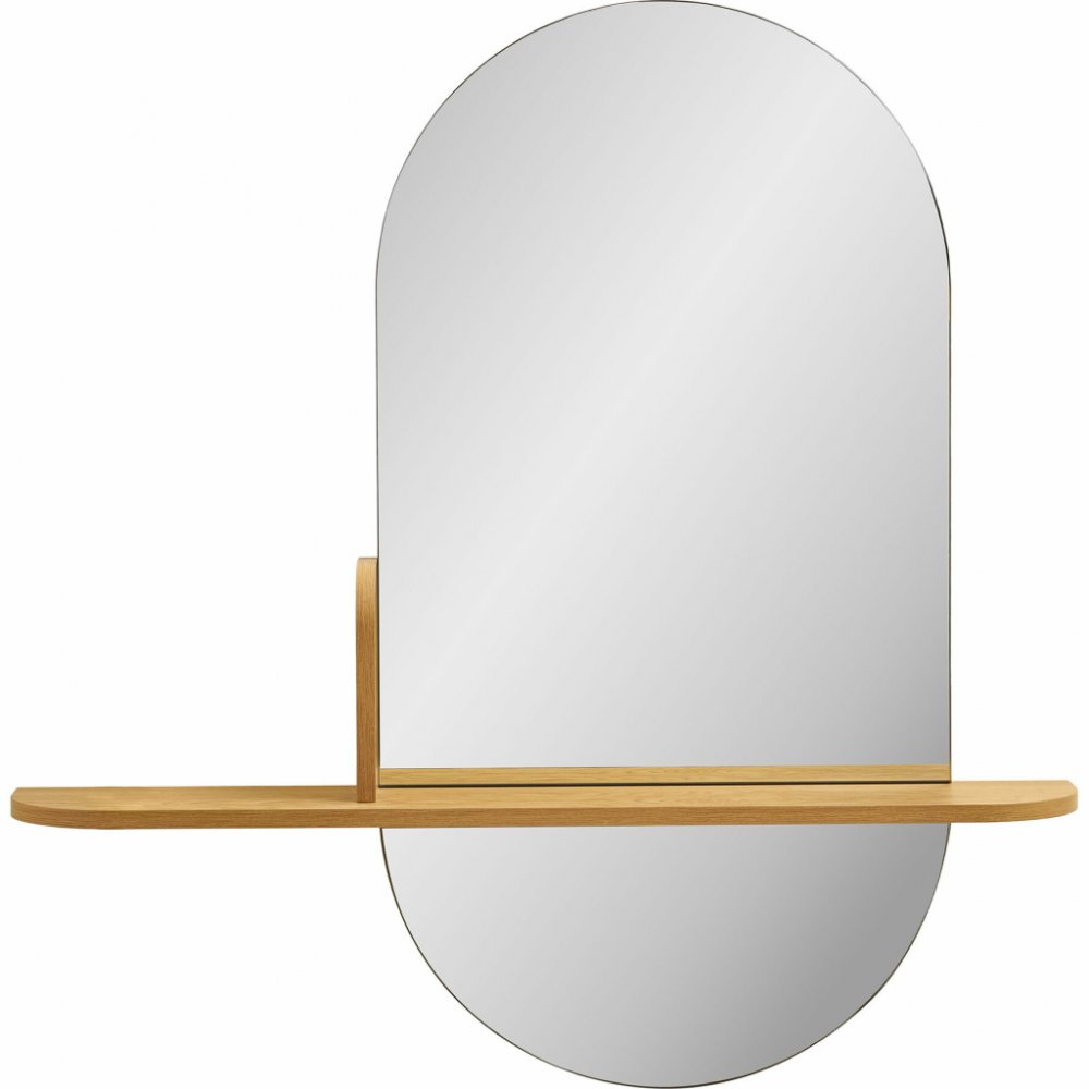 Zrcadlo s poličkou v dubovém vzhledu o rozměrech 92x15x94,5 cm, Barco, kombinuje praktické použití s moderním designem. Díky integrované poličce nabízí prostor pro odkládání drobností, kosmetiky nebo dekorací, což z něj činí ideální doplněk do předsíní, koupelen nebo ložnic. Při použití v interiéru přidává přírodní teplo a elegantní funkčnost, vhodné pro skandinávský nebo moderní styl.