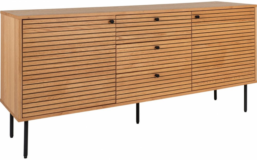 Stylová komoda v dekoru dubu s kombinací světlé a tmavé hnědé, rozměrů 150×40×74 cm, Kyoto nabízí prostorné a elegantní řešení pro úložný prostor. Vysoce kvalitní materiál a moderní design dodají vašemu interiéru teplo a přirozený vzhled. Perfektní do obývacího pokoje, ložnice nebo jídelny, kde slouží jako funkční a stylový doplněk.