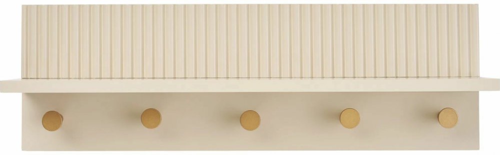 Nástěnná police ROCCA má pět háčků na zavěšení oblečení nebo doplňků, prostor poličky využijete na čepice nebo klobouky. Je vyrobena z MDF, v béžové barvě, která se hodí téměř ke všemu.