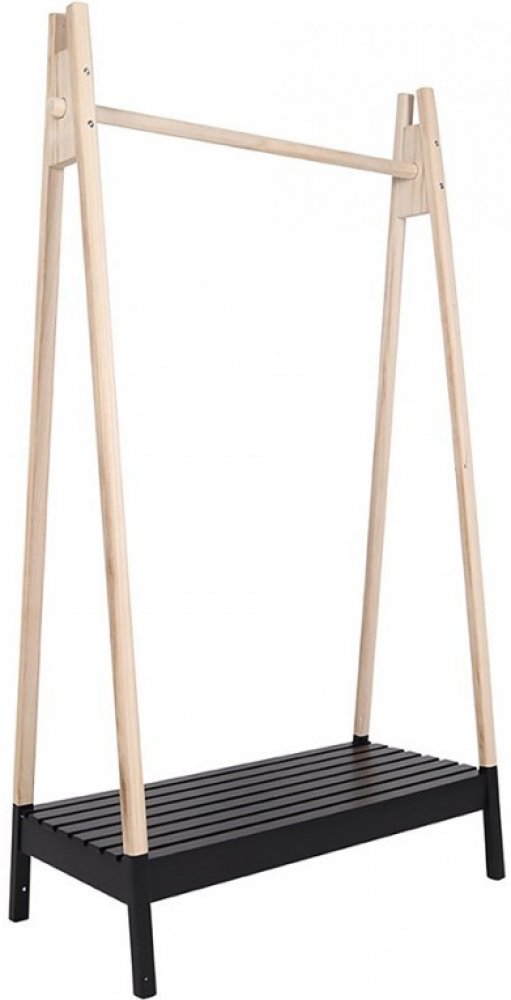 Stojan na oděvy z přírodního dřeva a s černým botníkem je ideálním bytovým doplňkem pro uložení oblečení a pro boty na dně věšáku.