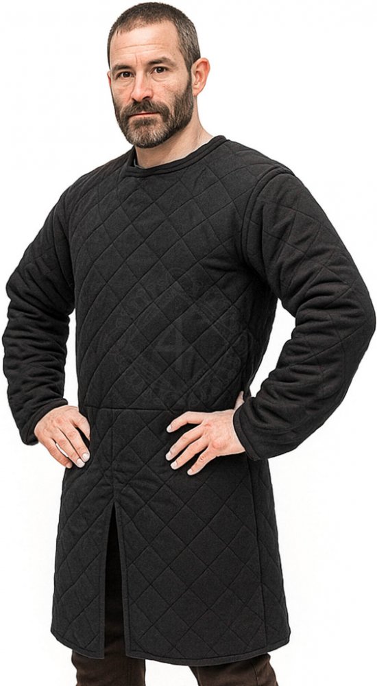 Dlouhý prošívaný gambeson (prošívanice), černý