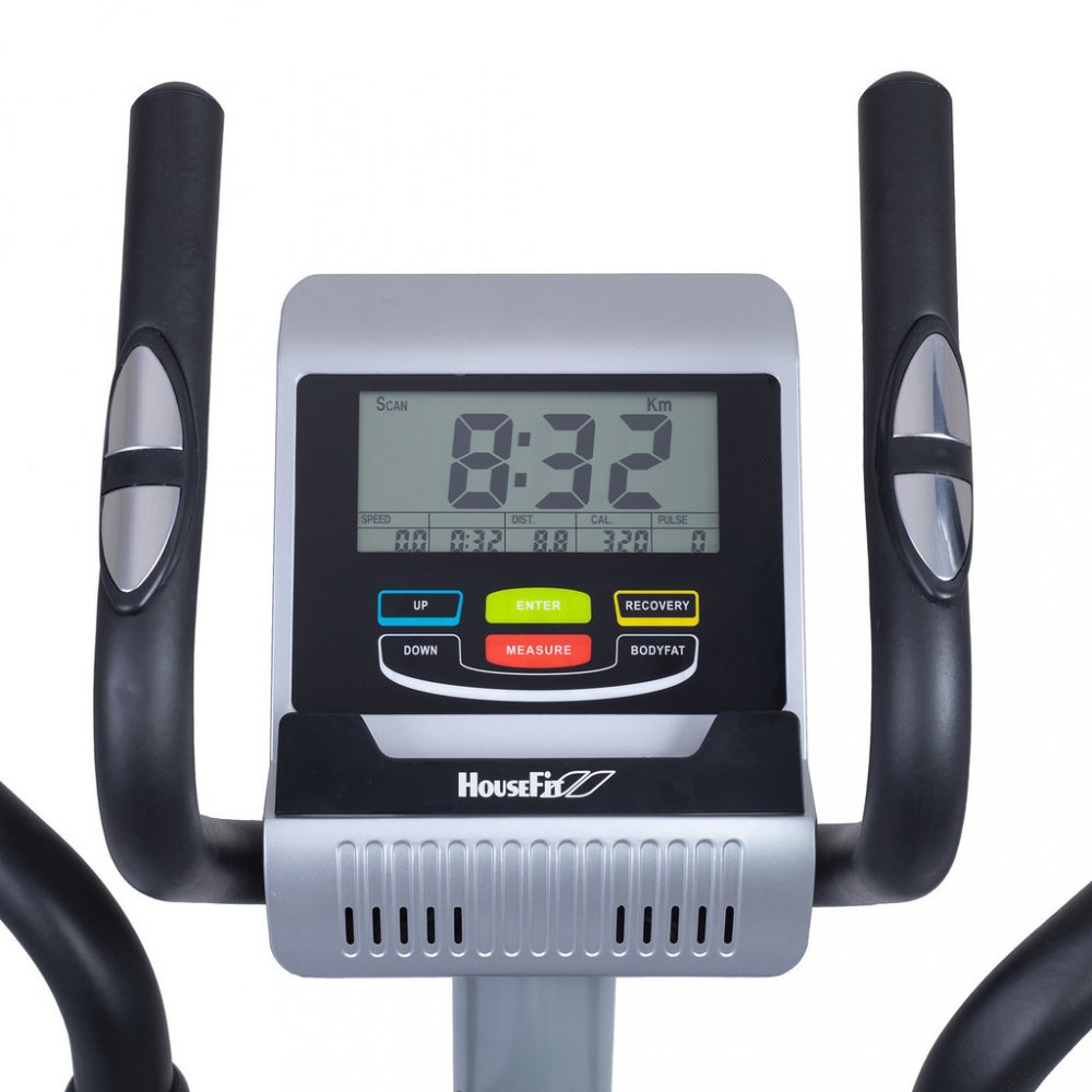 HOUSEFIT MOTIO 30 má přehledný a snadno ovladatelný LCD počítač s přehledným displejem. Zobrazuje základní hodnoty jako čas, rychlost, vzdálenost, počet spálených kalorií, tepovou frekvenci a celkové najeté kilometry. Měření tepové frekvence se provádí pomocí dlaňových snímačů v rukojetích. Dále je vybaven systémem RECOVERY, který umí vyhodnotit v tzv. zklidňující fázi po cvičení váš fyzický stav, měřený v závislosti na rychlosti poklesu tepové frekvence bezprostředně po dokončení tréninku, což je ideální pro sledování Vašeho pokroku. Napájení počítače je přes tužkové baterie (2 x AA - 1,5V).