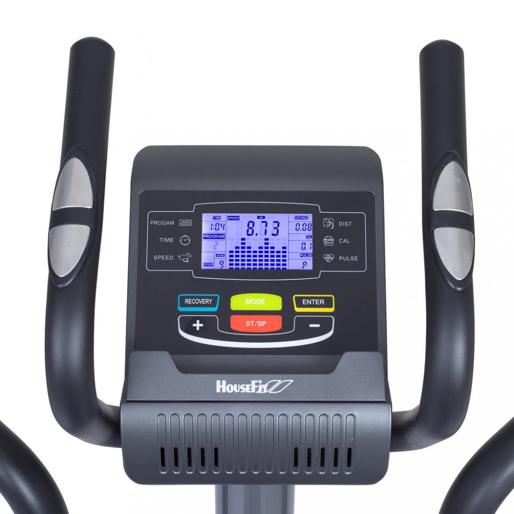 HOUSEFIT MOTIO 35 disponuje přehledným a snadno ovladatelným počítačem s přehledným podsvíceným LCD displejem. Z programové nabídky nabízí celkem 12 programů, díky nimž budete mít svůj trénink plně pod kontrolou. Zobrazuje základní hodnoty jako je čas, rychlost, vzdálenost, spálené kalorie, frekvence otáček (rpm) a Váš aktuální puls (měření tepové frekvence se provádí pomocí senzorů v rukojetích). Počítač je vybaven 11 přednastavenými programy s různými profily trati umožňující variabilní nastavení úrovně zátěže + jedním HRC programem řízeným tepovou frekvencí (u tohoto programu je třeba se držet snímačů tepu po celou dobu tréninku).