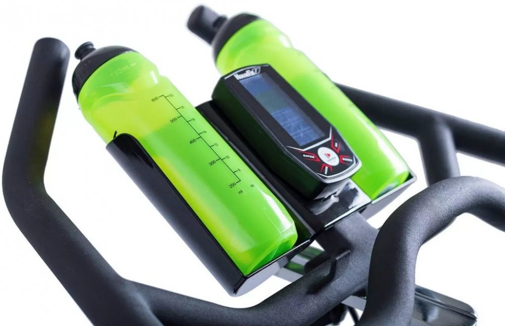 Součástí multiúchopových řídítek je i 2x držák na láhev s vodou. Všechno je nastavitelné pro váš maximální komfort při tréninku!
