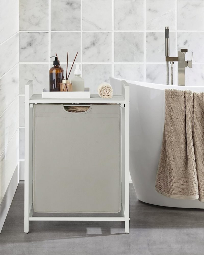 Pokud hledáte elegantní a praktický způsob, jak udržet své prádlo v pořádku, potom vám můžeme doporučit koš na prádlo Houseland. Není důležité, zda jde o oblečení po jednom nošení, nebo špinavé věci, tento koš vám umožní snadno skladovat veškeré použité prádlo. Dá se uzavřít pomocí víka, zásluhou čehož zůstane vše ukryté a koš bude působit estetičtějším dojmem. Jeho hranatý se dokonale přizpůsobí každému místu v bytě. Výrobním materiálem je textil. Pojme objem až 65 l. Rozměry koše na prádlo Houseland jsou 72 × 50 × 33 cm (vך×h). Hmotnost odpovídá 4,7 kg. Klíčové vlastnosti produktu Houseland Koš na prádlo File 65 l, bílo-šedý Koš na špinavé prádlo Houseland skvěle poslouží ke skladování oblečení určeného k praní Zavírá se na víko Hranatý tvar se bude vyjímat v každém interiéru Ke zhotovení tohoto prádelního koše slouží textil Prádelní koš Houseland má objem 65 l Rozměry jsou 72 × 50 × 33 cm (vך×h) Má hmotnost 4,7 kg Design koše na prádlo umocňuje bílá a šedá barva