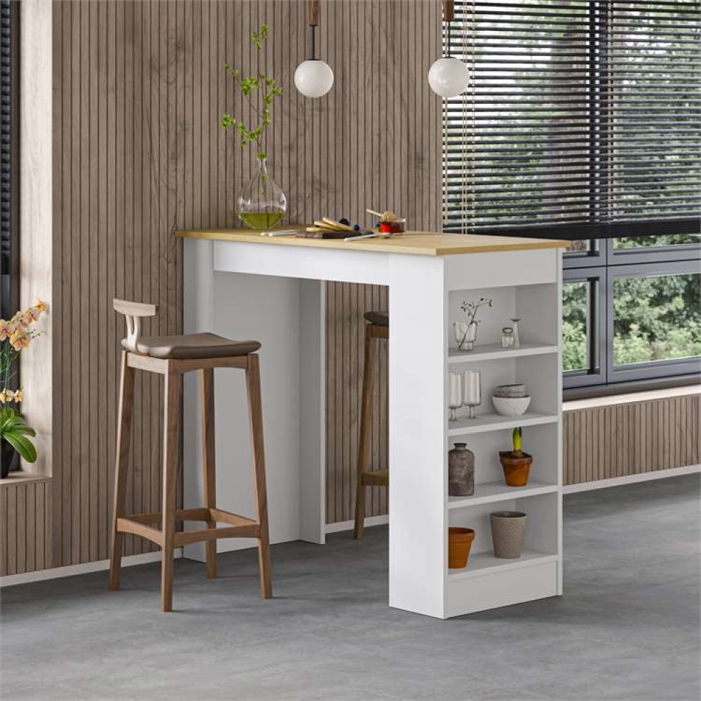 Představte si, jak skvěle by vypadal barový stůl Houseland Swallow ve vašem domácím baru nebo kuchyňském koutě. Tento stylový stůl v kombinaci dub safírový/bílý je navržen tak, aby se hodil do každého interiéru. Díky svým kompaktním rozměrům je ideální i do menších prostor. S výškou 102 cm, šířkou 117 cm a hloubkou 54 cm poskytuje dostatek místa pro vaše nápoje, sklenice a další potřeby.