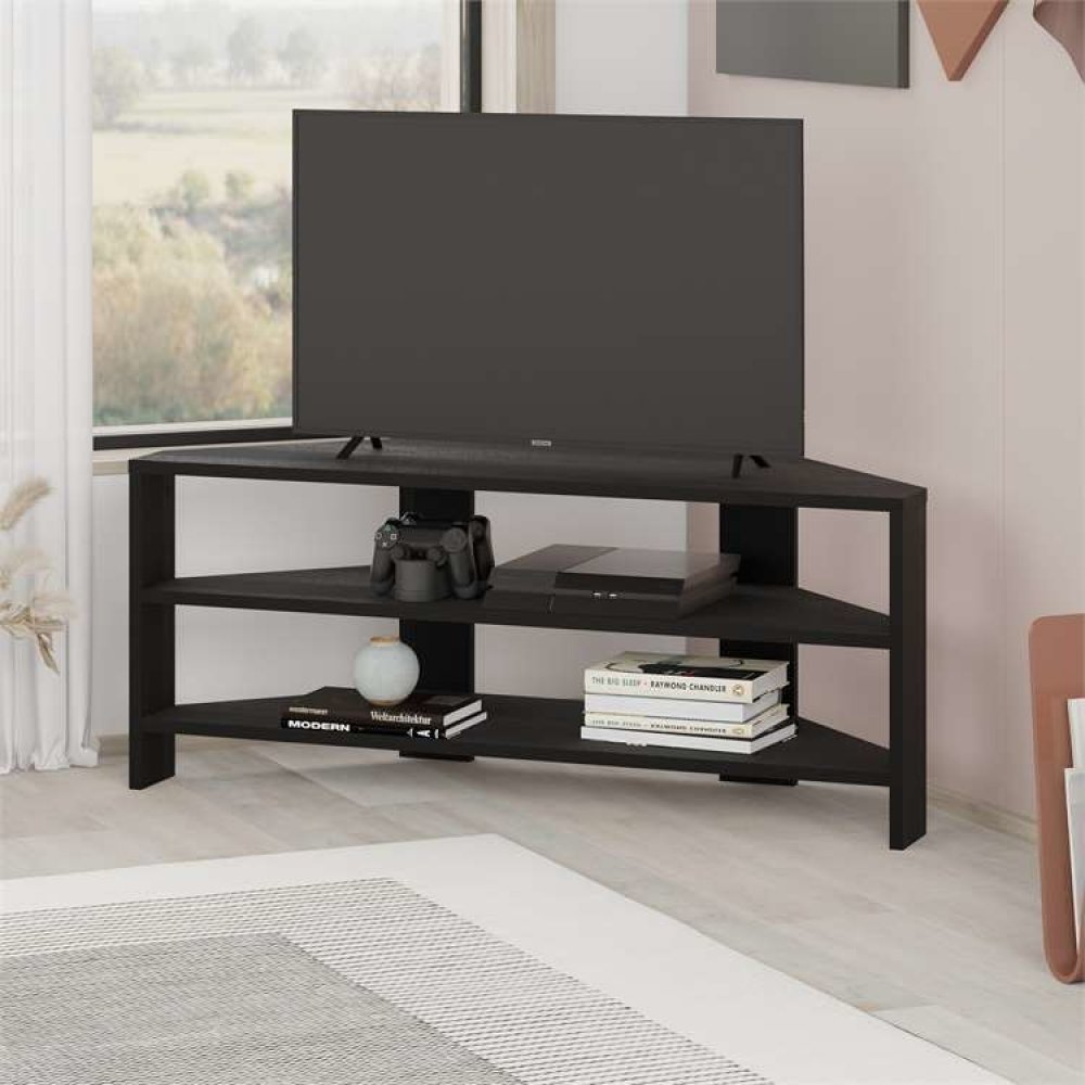 Rohový TV stolek Houseland Thales v dekoru dub tmavý je kombinací praktičnosti a moderní elegance. Díky chytrému rohovému provedení se perfektně hodí i do menších obývacích pokojů, kde šetří místo, a přitom nabízí dostatek úložného prostoru.