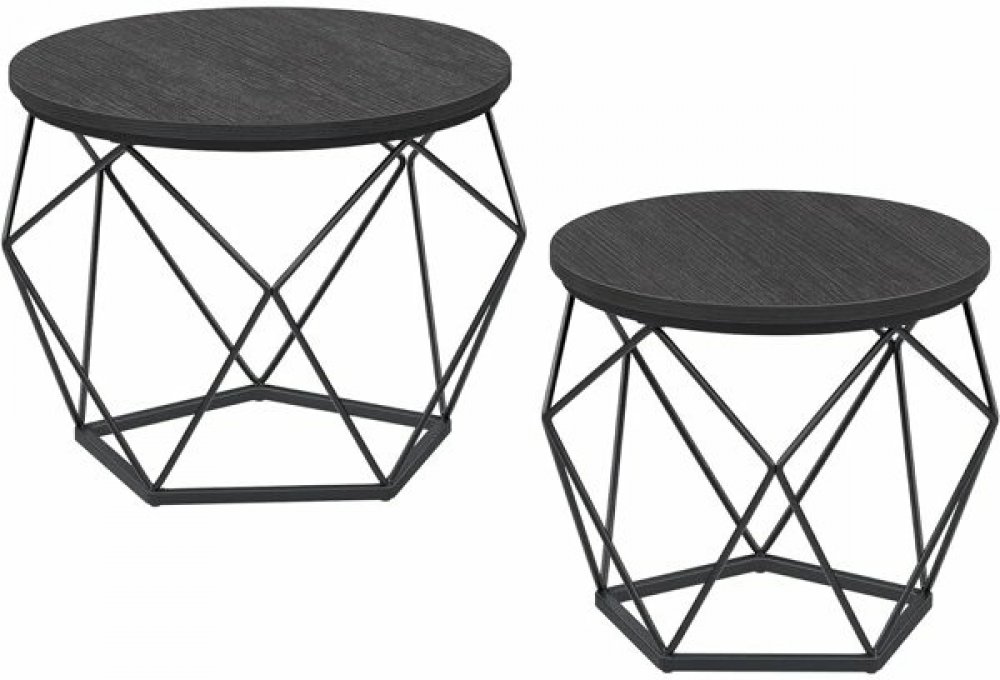 Vytvořte si útulný a funkční prostor s touto sadou dvou konferenčních stolků v elegantní černé barvě. Geometrický design podnoží dodá vašemu domovu moderní nádech a stane se stylovým doplňkem pro každodenní použití.
