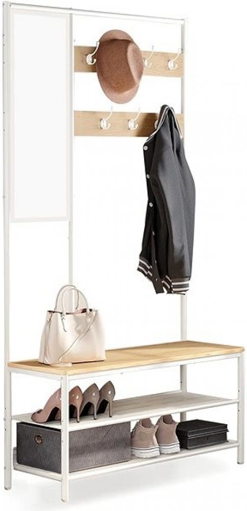 Víceúčelový věšák do předsíně má 7 háčků, 98 cm širokou lavici, 2 police a 1 zrcadlo. Na tento věšák 4 v 1 můžete umístit vše, co potřebujete, než vyrazíte ze dveří - oblečení, tašky, klobouky a boty.