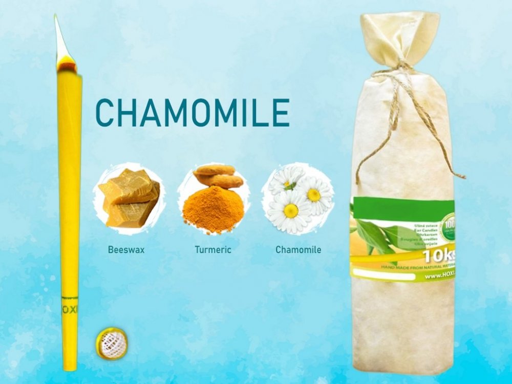 Hoxi ušní svíce s heřmánkem v plátěném pytlíku 10 ks