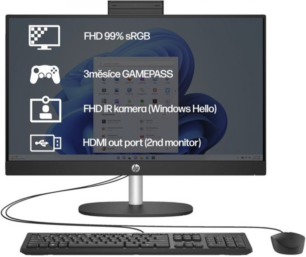 all In One PC 23.8" 1920 × 1080, Intel Core i3 N300 Alder Lake 3.8 GHz, Intel Intel UHD Graphics, RAM 8GB DDR4-SDRAM, SSD 512 GB, Bez mechaniky, Wi-Fi, HDMI, 2× USB 3.2, 2× USB 2.0, klávesnice a webová kamera, Windows 11 Home (B9AK0EA#BCM)