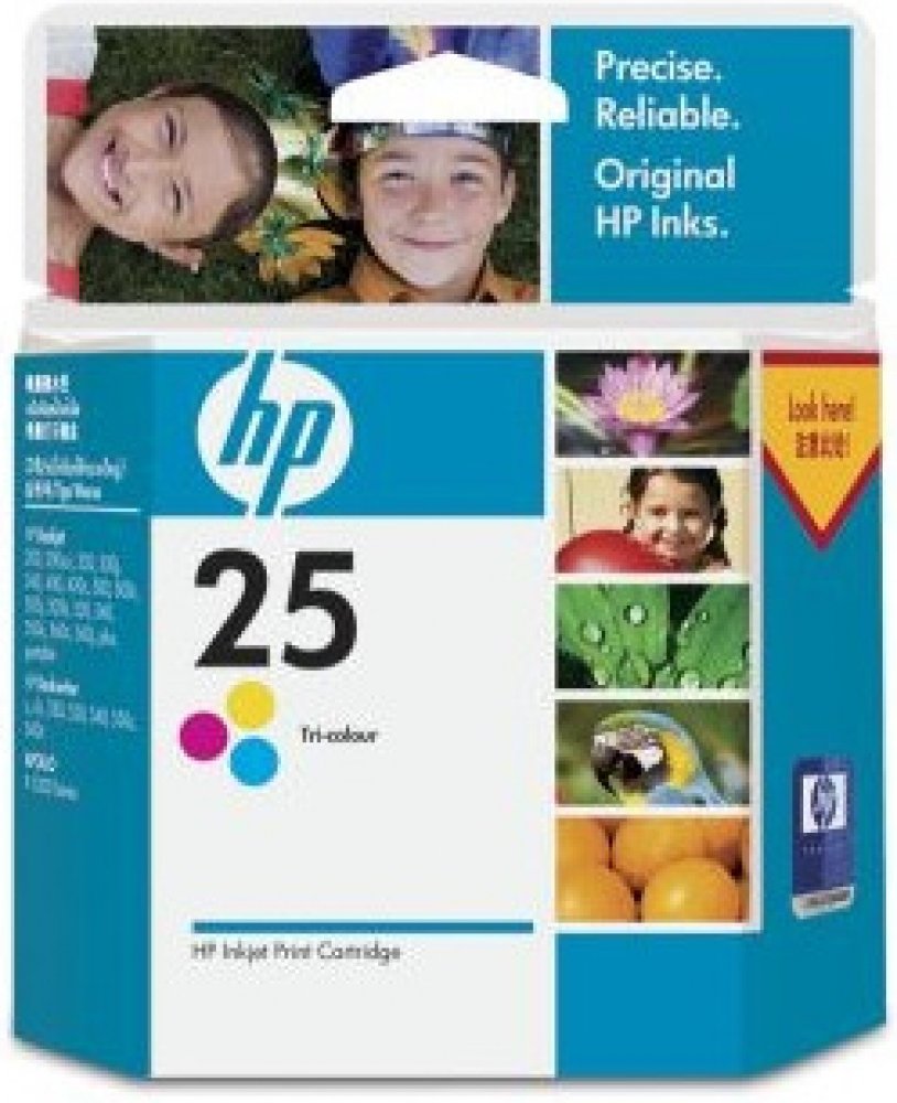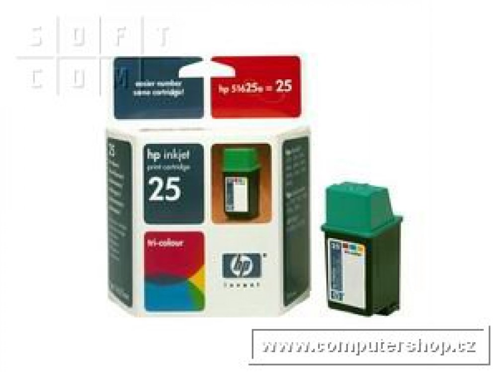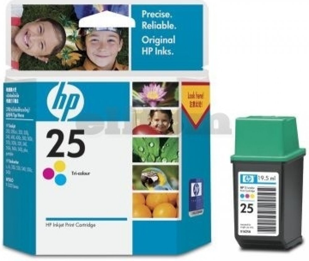 - doprodej. Garance funkčnosti v rámci záruky.Tříbarevná inkoustová tisková kazeta HP 25 je ideální pro uživatele v podnicích nebo domácnostech, kteří požadují barevný tisk profesionální kvality. Kazeta HP 25 vytváří barevné dokumenty, které zaujmou a dlouho zůstanou v paměti. Byla speciálně navržena k práci s papíry a fóliemi HP k inkoustovému tisku, se kterými poskytuje vždy čistý a vždy ostrý výstup. Barvy tiskových kazet: Tříbarevná Výtěžnost (barevně, A4): 640 stran Objem dodávané tiskové kazety: 19,5 ml Kompatibilita: HP DeskJet 310/320/340 HP DeskWriter 310/320 Printers HP DeskJet 400/400L/420C/500C/540/550C/560C Printers HP DeskWriter 500C/540C/550C/560C Printers