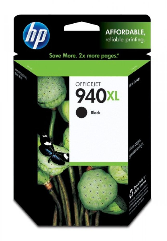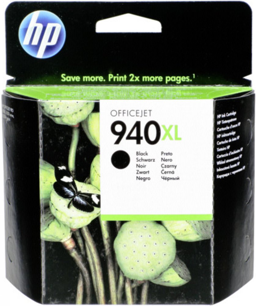 Černé inkoustové kazety HP 940XL Officejet tisknou černý text v laserové kvalitě pomocí inkoustů HP Officejet. Tiskněte profesionální dokumenty na obyčejný papír pomocí pigmentových inkoustů navržených pro kancelář.