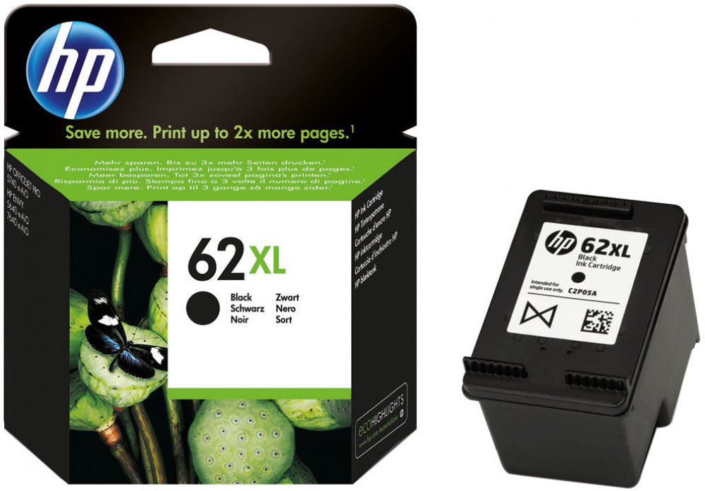 HP 62XL - Vysoká výtěžnost - černá - originál - inkoustová cartridge