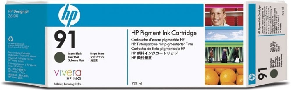 Pigmentová matná černá inkoustová kazeta HP 91, 775 ml, s inkoustem Vivera zaručuje trvale vysoce kvalitní výsledky s vynikajícími barvami, ostrými čarami a mimořádnou odolností vůči blednutí. Originální kazety HP přinášejí bezproblémový tisk.