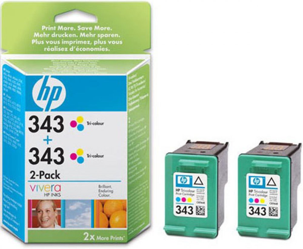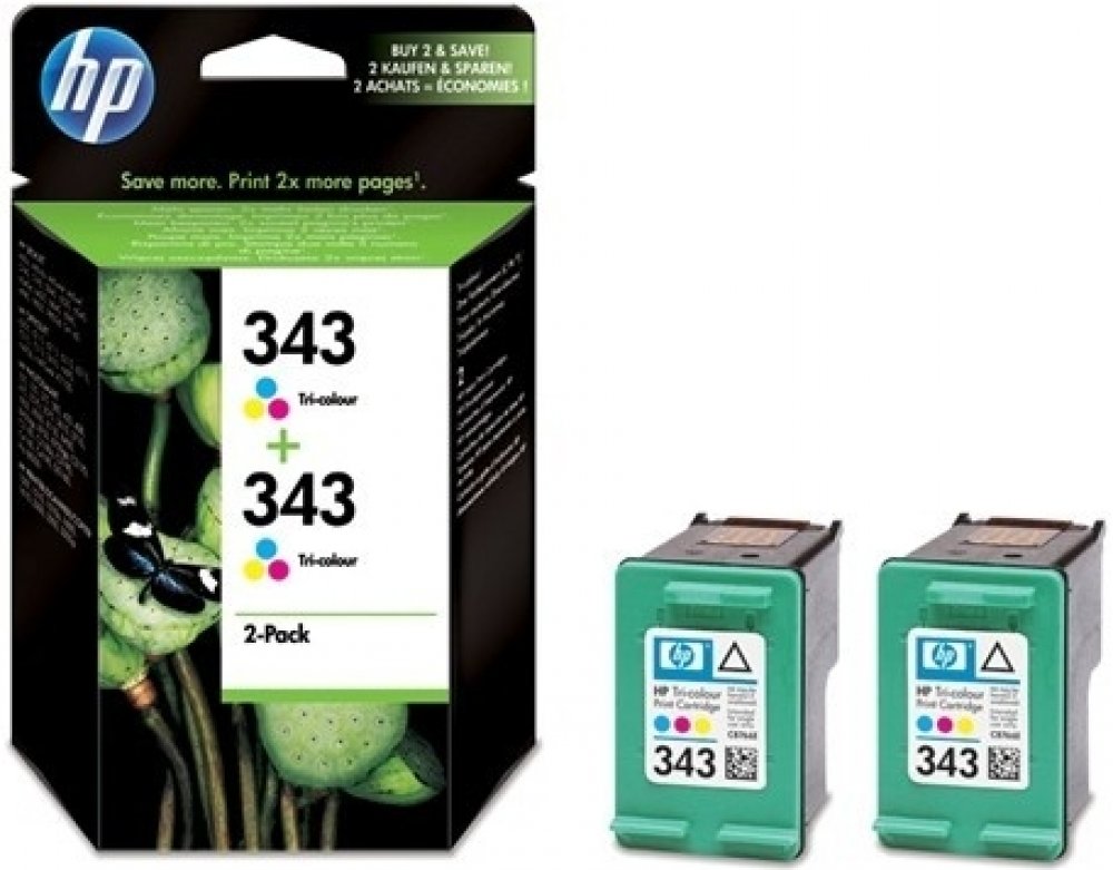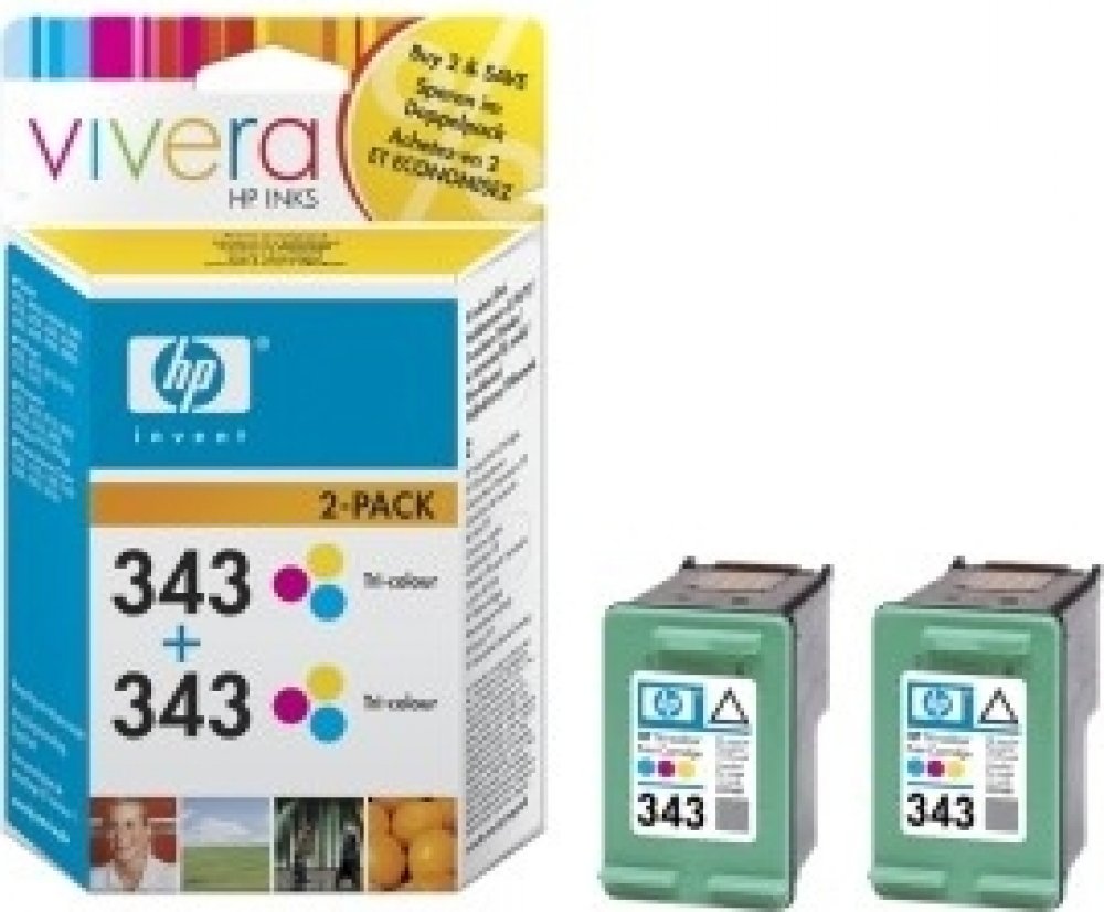 HP 343 Dvojbalení tříbarevné originální inkoustové kazety (CB332EE)