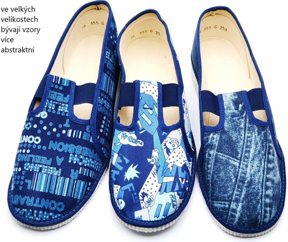 Barevné kombinace dle aktuálního stavu na prodejně. Vzhledem k tomu, že od výrobce chodí různé motivy, nemáme kapacitu vzory bačkor jednotlivě fotit dle velikostí. Pokud si přejete konkrétní motiv, napište jej do poznámky nebo Vám můžeme zavolat, jaké motivy ve vybrané velikosti momentálně máme skladem.