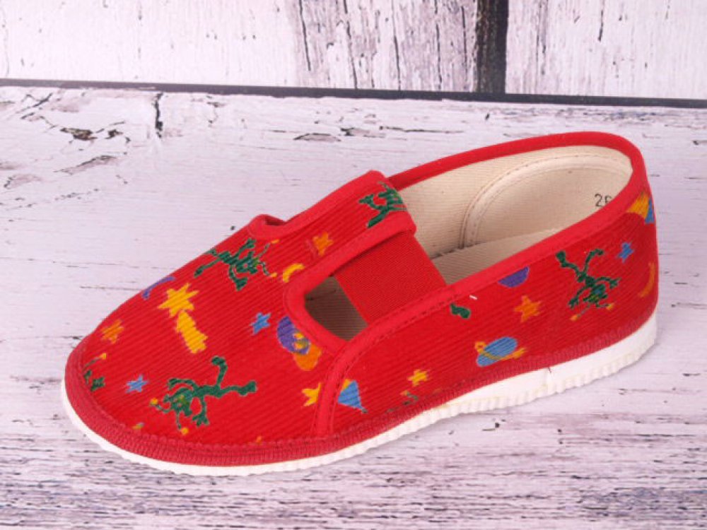 HP Čechtín papučky bačkory 555 červené vesmírné s ufonky