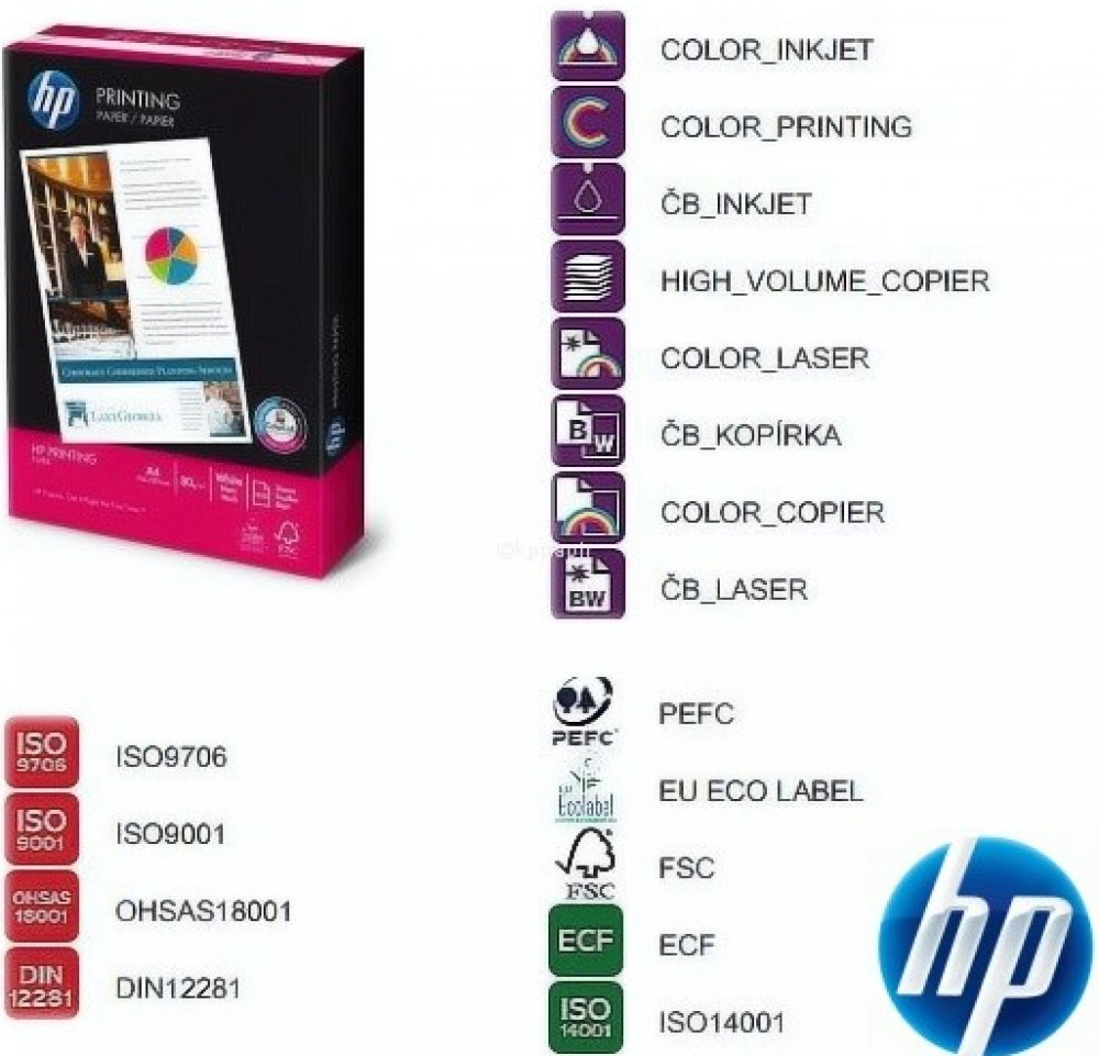 Tiskový Papír HP Printing Paper představuje řešení pro každodenní tisk – poznámky, koncepty, kopie souborů, přílohy e-mailu, zápisy z jednání, předlohy a datové listy. Tento multifunkční papír je určen pro laserové a inkoustové tiskárny, kopírky a faxy.
