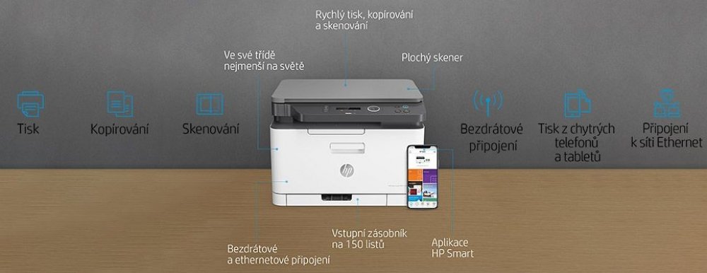 Maximalizujte produktivitu s nejmenší barevnou laserovou multifunkční tiskárnou na světě ve své třídě. S tiskárnou HP Color LaserJet MFP 178nw můžete pohodlně tisknout, skenovat a kopírovat ve vysoké kvalitě. Tisknout a skenovat můžete i přímo z telefonu.
