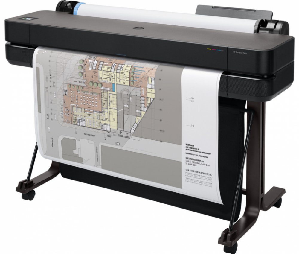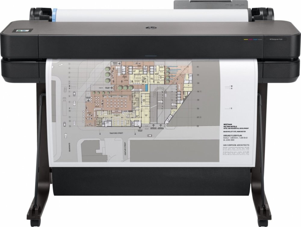 Barevná velkoformátová tiskárna s termálním inkoustovým tiskem a s maximální kvalitou tisku 1200 dpi, max. šířka média 914 mm, připojení USB 2.0, 1x Ethernet (LAN), WiFi, formáty papíru A0, A1, A2. A3, A4, paměť 1 GB. Rozměry: 1 317 × 605 × 932 mm, hmotnost 35,4 kg.
