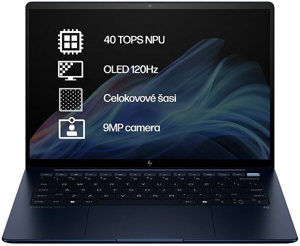 • USB-C s Thunderbolt, USB 3.2, WiFi 7, Bluetooth, IR 9MP AI webkamera, cítacka odtlackov prstov, podsvietená klávesnica, celokovové šasi, zvuk Poly Studio, Intel® EVO