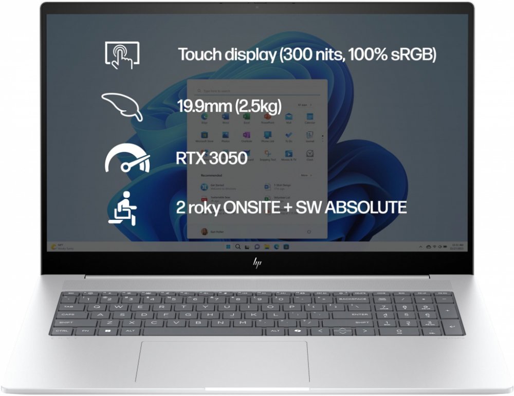 Displej: 43,9cm (17,3“) displej IPS s rozlišením FHD (1 920 x 1 080), vícedotykovou technologií, bezokrajovým sklem, tenkým rámečkem, 300 nity a 100% sRGB