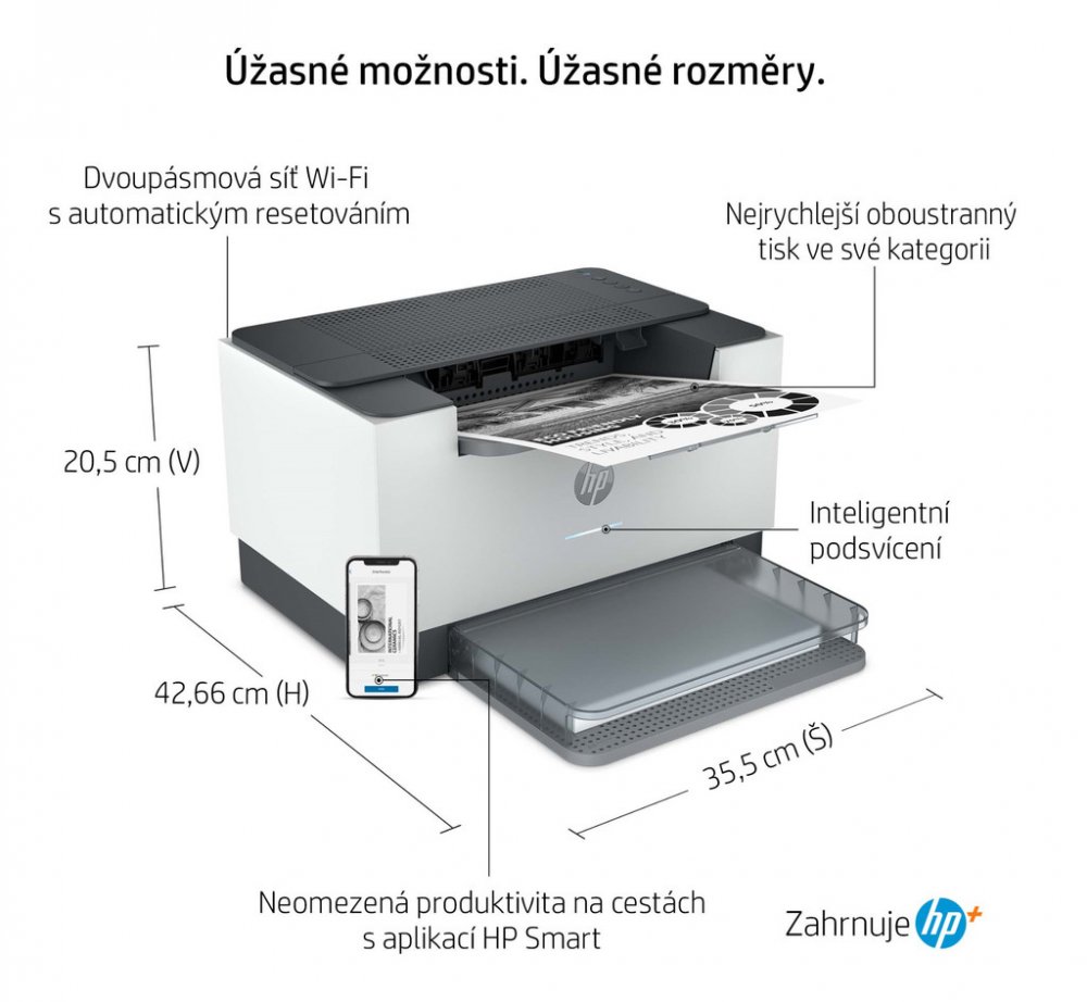 HP laserové A4 bílé 600 DPI 64 MB 355 mm 205 mm 280 mm 5.6 kg