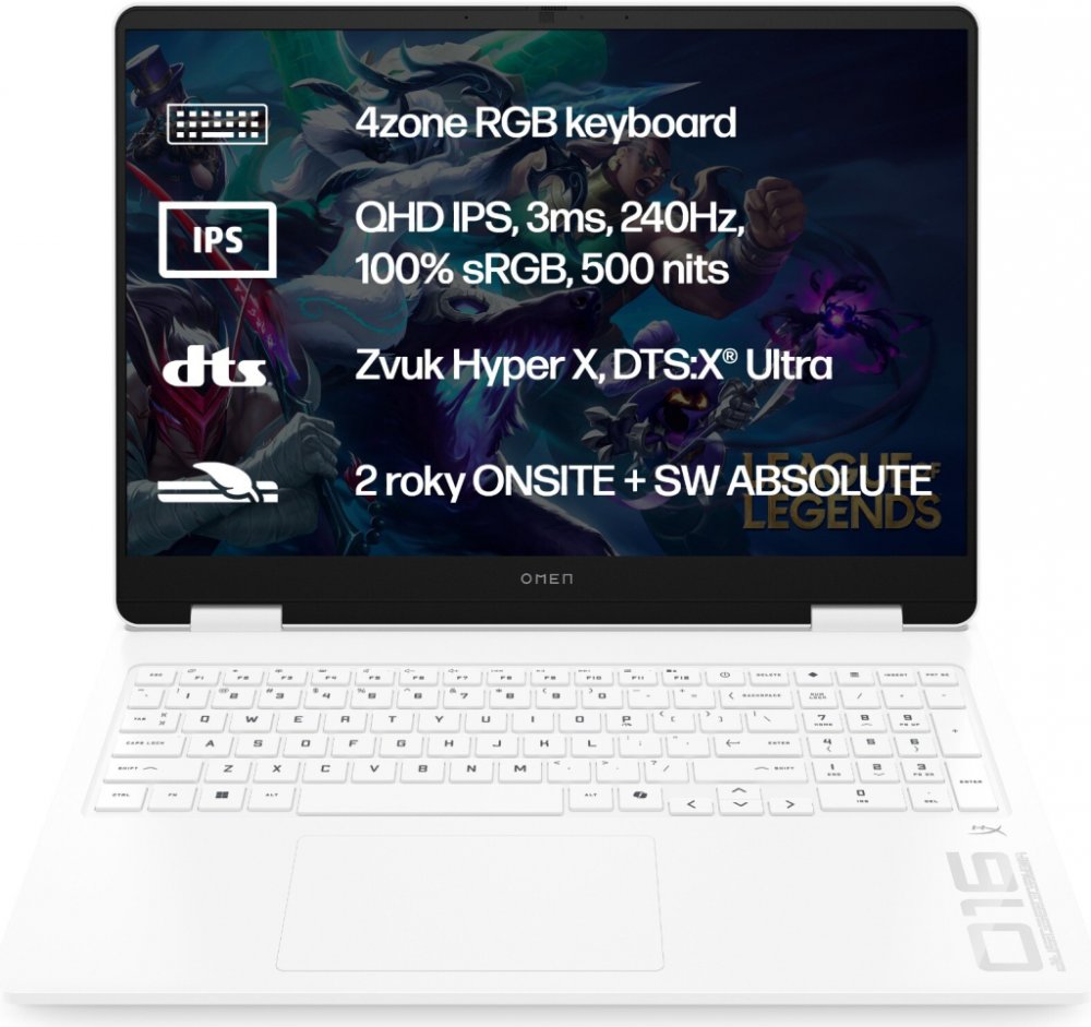 Displej: 40,6cm (16") IPS WQXGA (2560×1600) 16:10, 240 Hz, doba odezvy 3 ms, tenký rámeček, antireflexní úprava, funkce tlumení modrého světla, 500 nitů a 100% sRGB