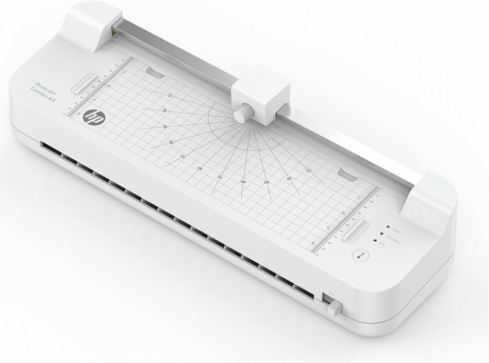 Laminovací přístroj HP OneLam Combo A3 je vybaven integrovanou řezačkou, která umožňuje řezání dokumentů v rovném, vlnovkovém nebo perforovaném formátu. S pomocí natištěných úhlů a centimetrové mřížky lze vaše laminované dokumenty snadno a přesně ořezat na požadovanou velikost. Stejně jako ostatní laminátory řady HP OneLam je i tento vhodný pro laminování za tepla i za studena. Umožňuje laminovat ...