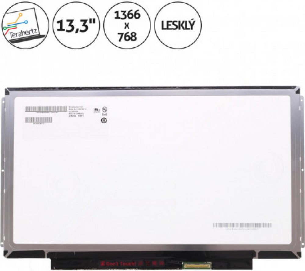 Konektor 40 pin konektor vpravo dole / Podsvícení LED / Povrch displeje lesklý / Pozice úchytů 3 nalevo a 3 napravo ( v liště ) / Rozlišení 1366 x 768 HD / Stav nový / Typ displeje Slim / Úhlopříčka 13,3